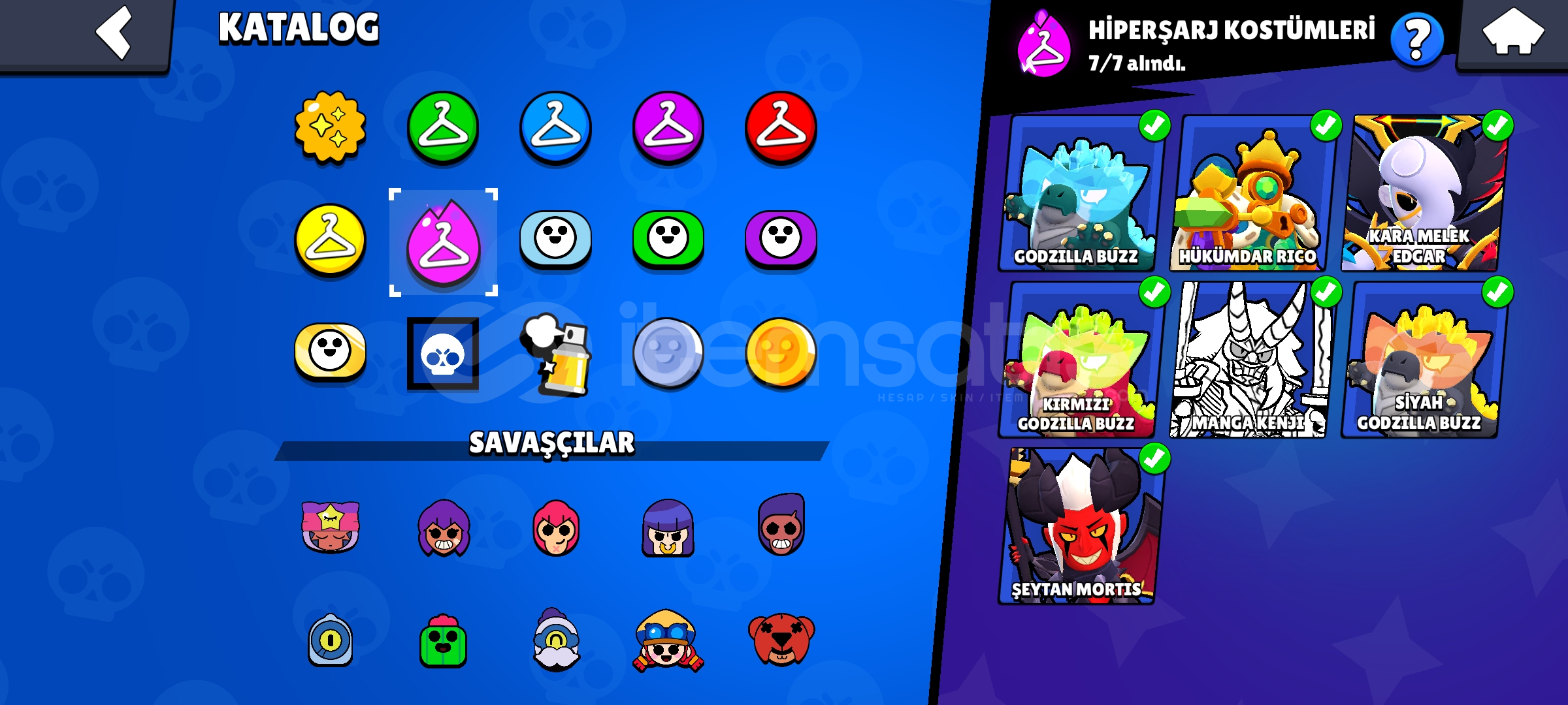 50 hipersarj full karaker. 60+ 11 seviye. 15k+ para basılmış. Pro passler full. 15 karakter unvanı toplam 28 ünvan. 2019 hesa...
