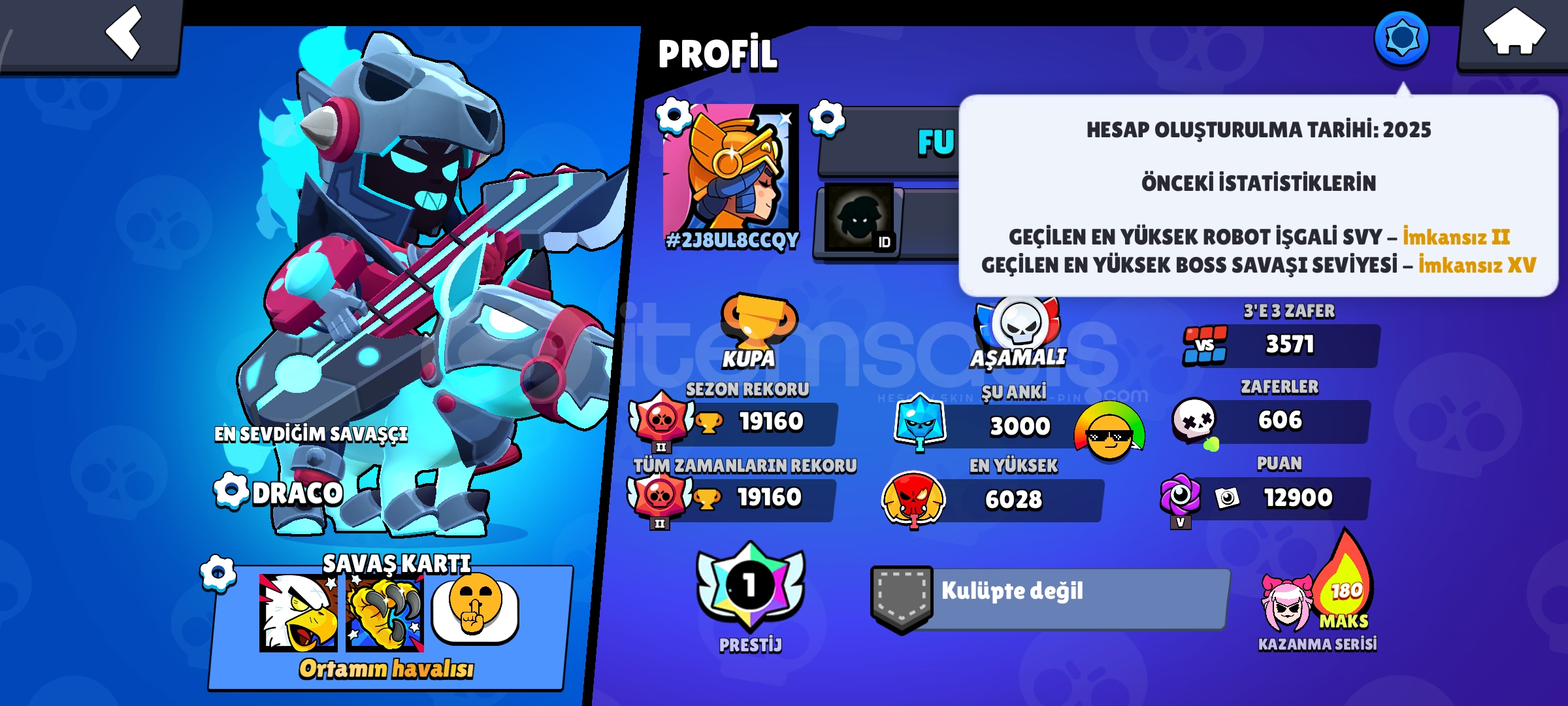 PRESTİJLİ MÜKEMMEL 2025 HESABI!!! HESABA 5000-6000₺ PARA YATIRILMIŞTIR. 1909 STU İLE PRESTİJ ALINMIŞTIR. HESAPTA ALTIN MELODİE MEVCUTTUR. 2 SEZON PRO PASS AÇILMIŞTIR. 10-15 TANE ÜNVAN MEVCUTTUR. (HESAP -5900 ELMASTIR) ELMAS -DE OLDUĞU İÇİN ÇOK UYGUN FİYATA SATILIKTIR. MAİL ADRESİ DEĞİŞİYOR, TELEFON NO BAĞLI DEĞİLDİR. (HESABI SATIN ALINDIKTAN SONRA HEMEN DÖNÜŞ YAPILIP TESLİM EDİLECEKTİR.)