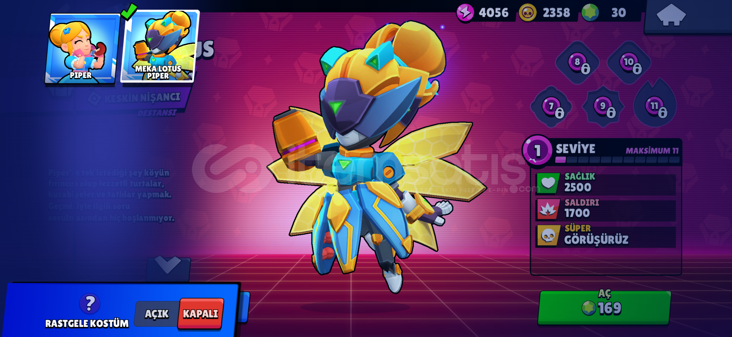 SAKIZ PARASINA 11 SEVİYELİ KOSTÜMLÜ NİTA HESAP.MAİL-İSİM-SUPERCELL İD HEPSİ DEĞİŞTİRİLEBİLİR DURUMDADIR..ALMAK İSTEYENE 7.5TLye İLAN AÇILIR.