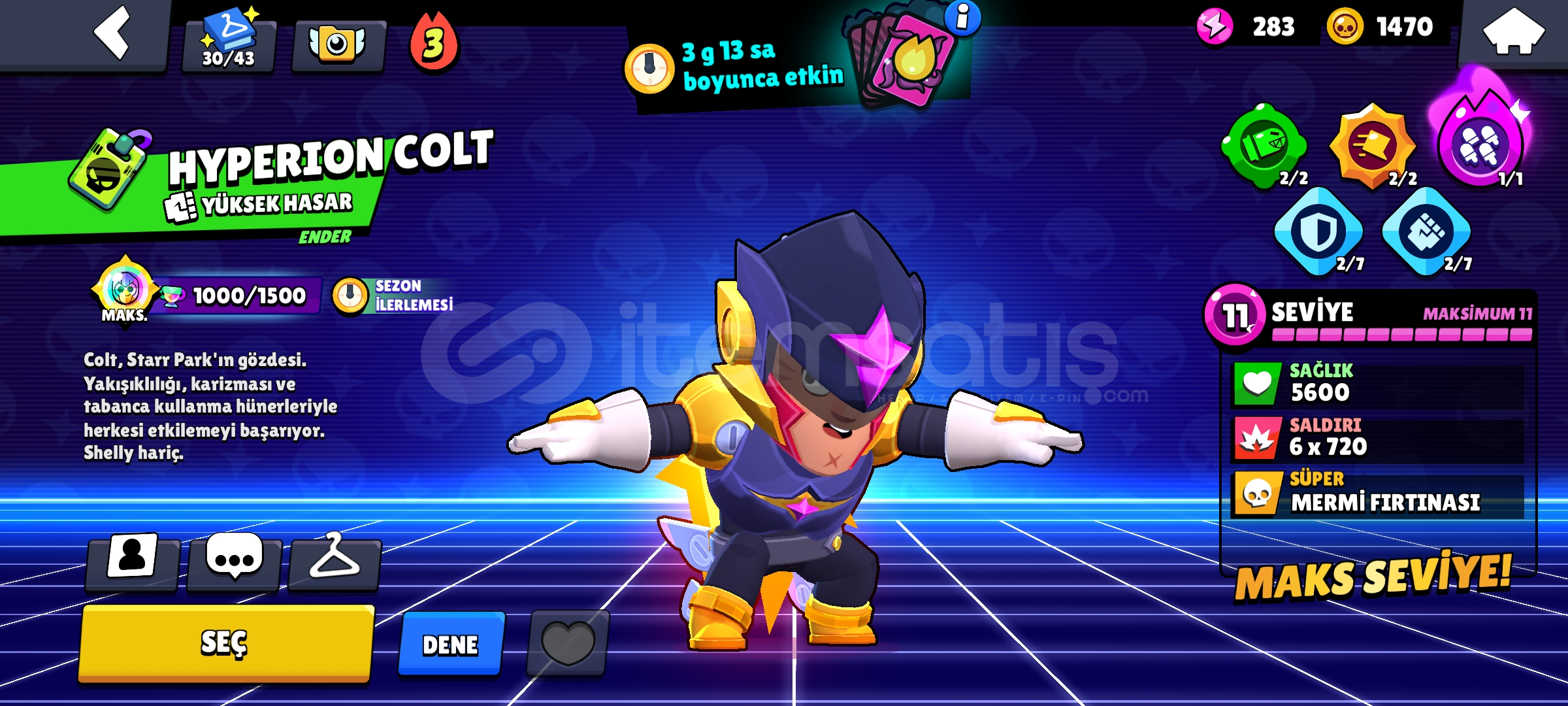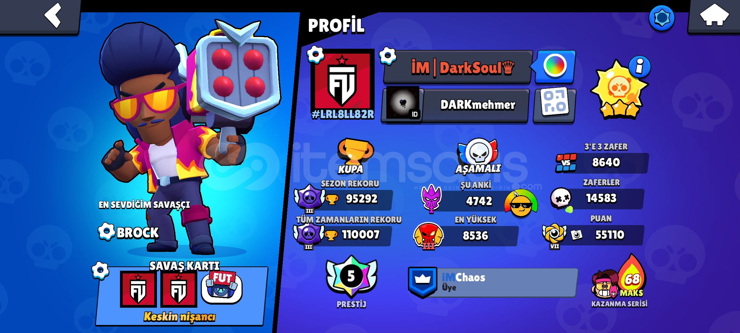 110 K,güneş 3,5 prestij ,400+ kostüm ,17 pass,2 pro pass açılmıştır 69 karakter full seviye geri kalanı 10 seviye