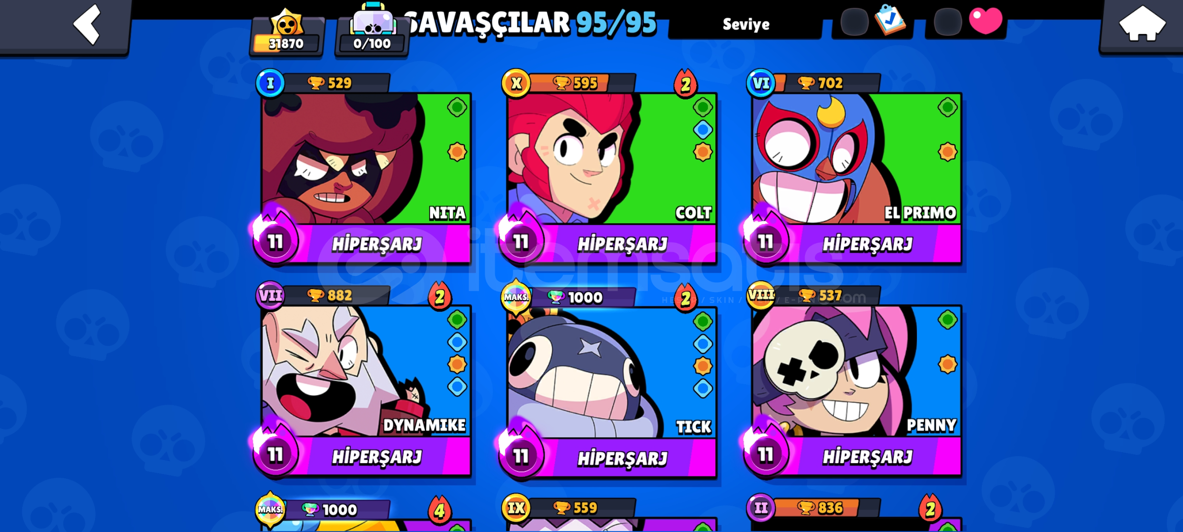 28 hiper şarjli karakterler var 2 tane hiper şarjli kostüm çoğu karakterin kostümü var 32 bin kupa tüm karak...