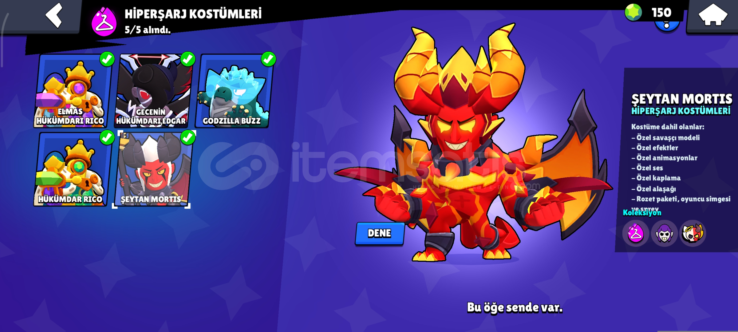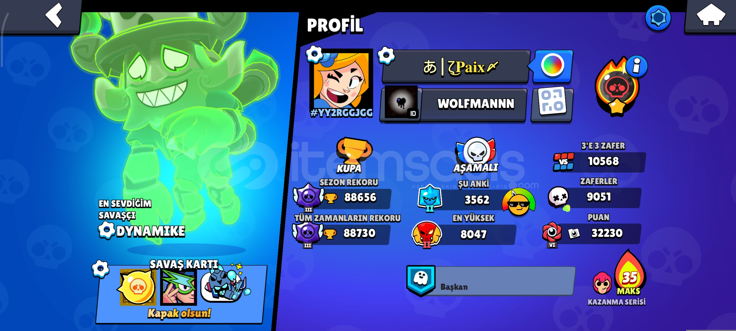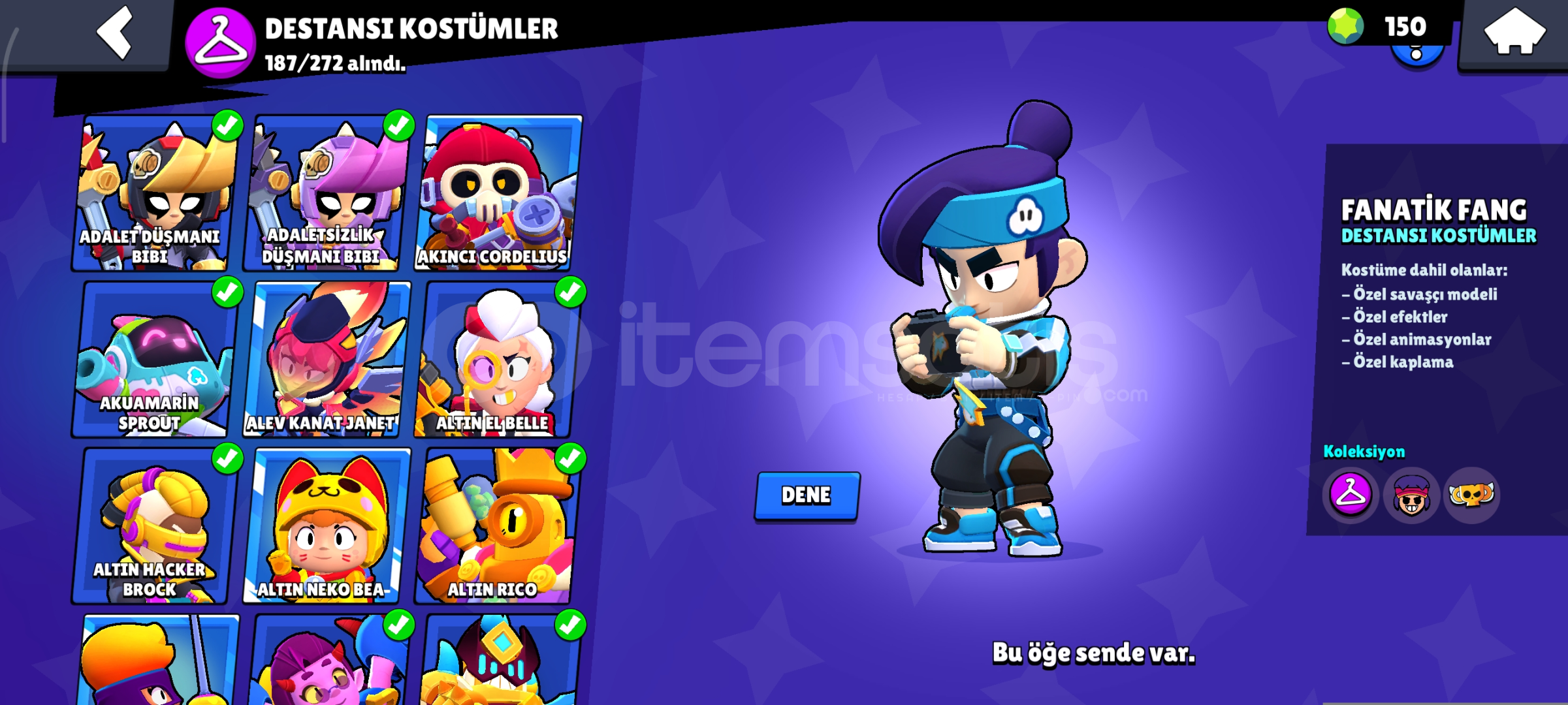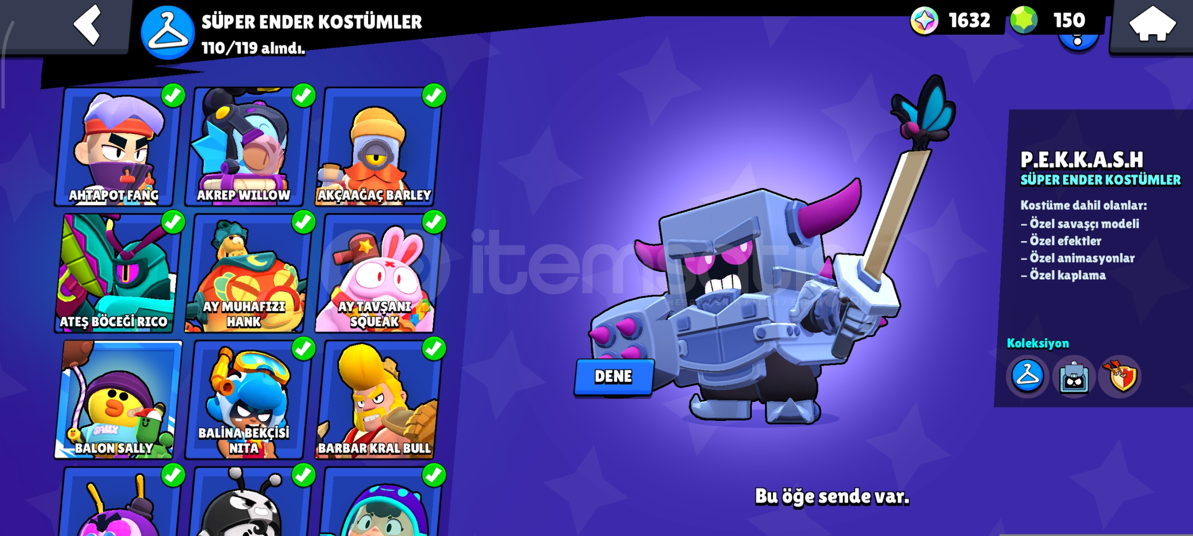88.500 kupa hesap 75 hipersarj var 400+kostum 1 sezon pro pas 18 sezon brawl pas plus 1 tanede alıcıya hediye brawl pas plus vardır hesapta bi sıkıntısı yok pazarlık payı vardır detaylı bilgi için 506 351 16 58