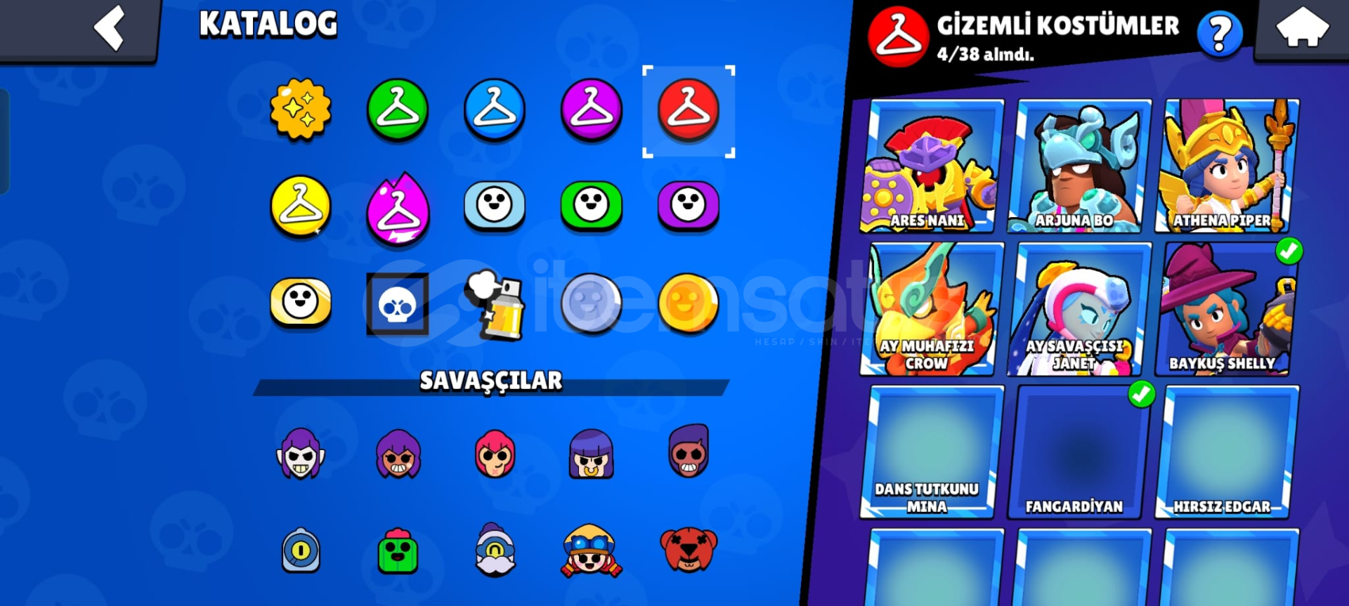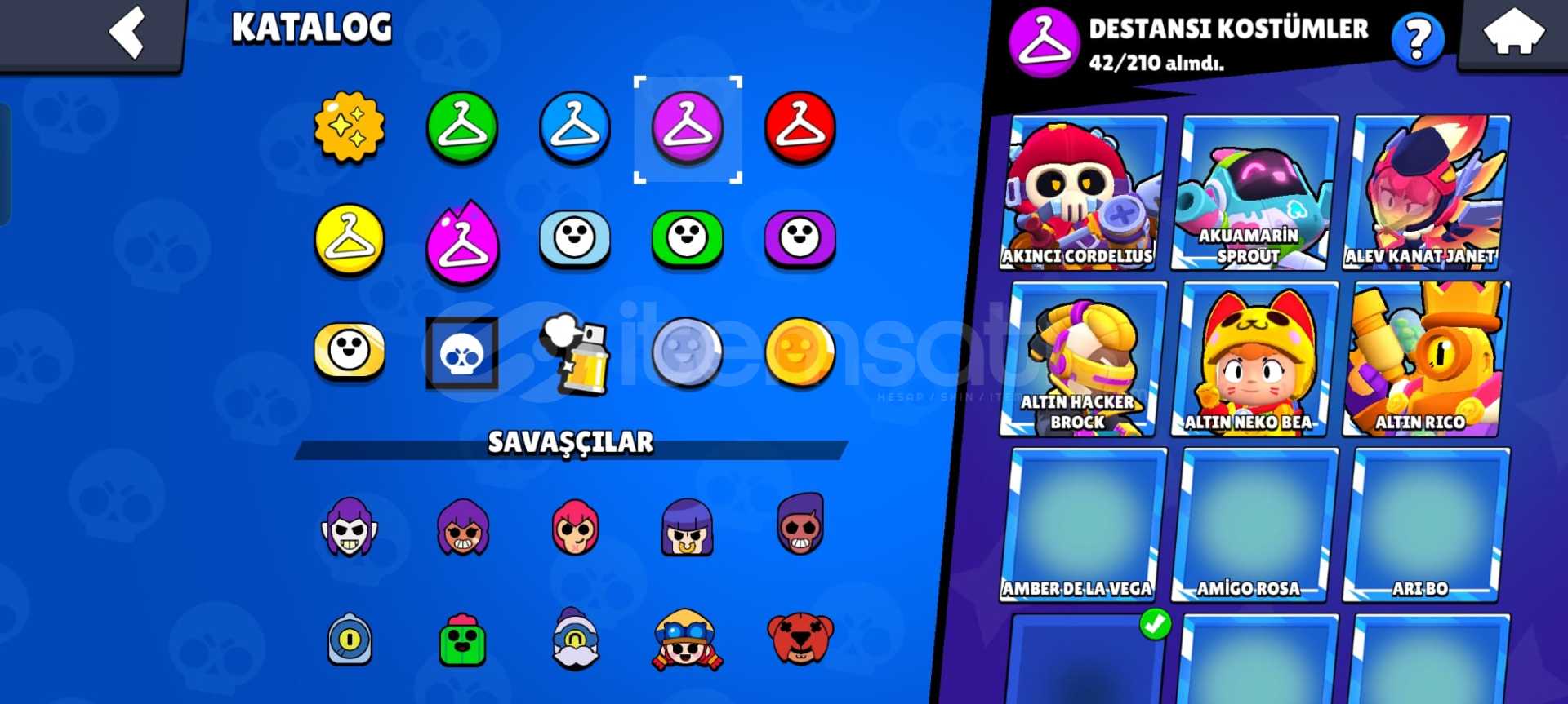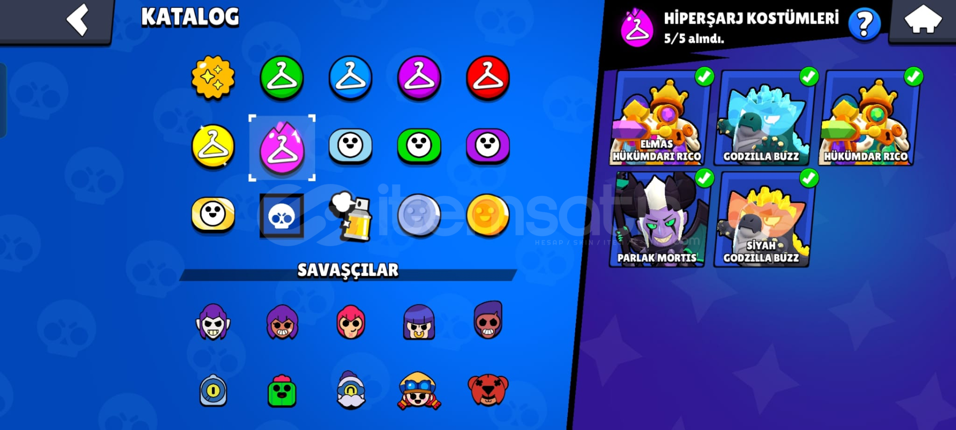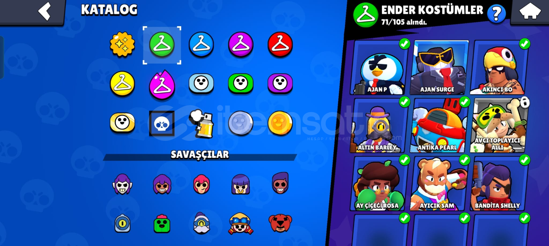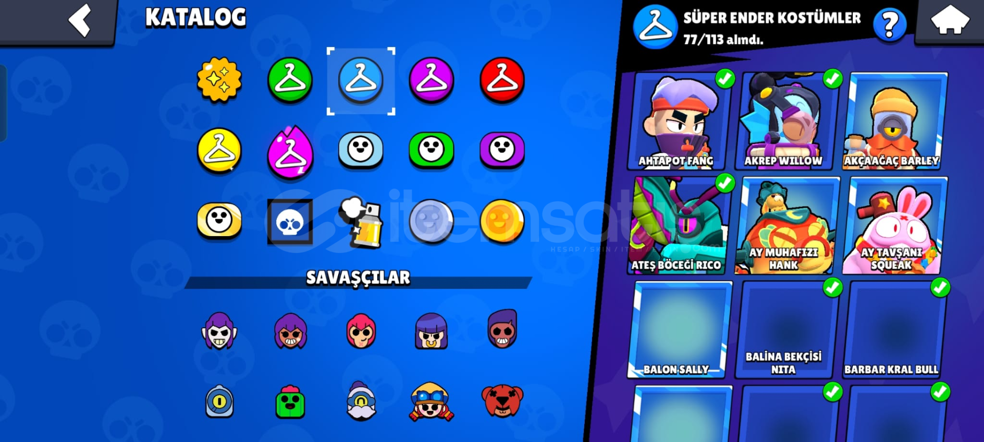 89/9552827 kupa200 farklı skin71 Ender skin77 süper ender skin42 destansı skin4 gizemli skin1 efsanevi skin5 hipersarj skin2019 yılı hesap13 karakter max