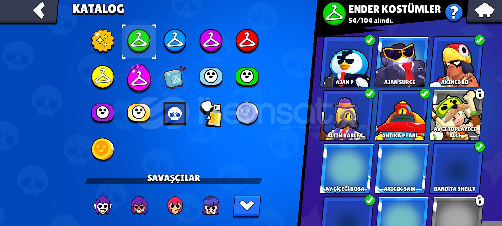 178 kostüm 233 taş 7 unvan 75 karakter 30 k 1500 TL para yatırılmıştır içinde çok iyi kostümler ...