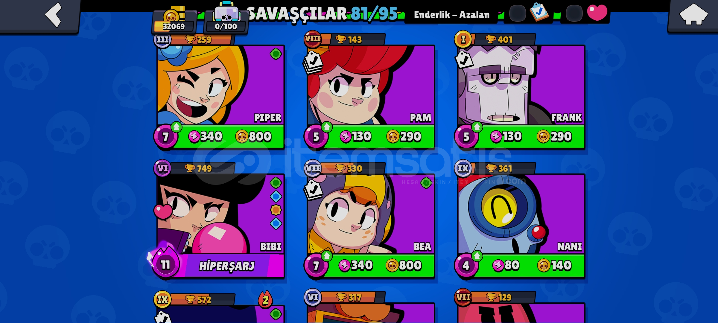 32K Kupa • 81 Karakter • Godzilla Buzz, Serseri Mortis, Odin Codelius, Kötü Kraliçe Pam, Kaptan Carl + 66 Elmas 8.500 Mücevher