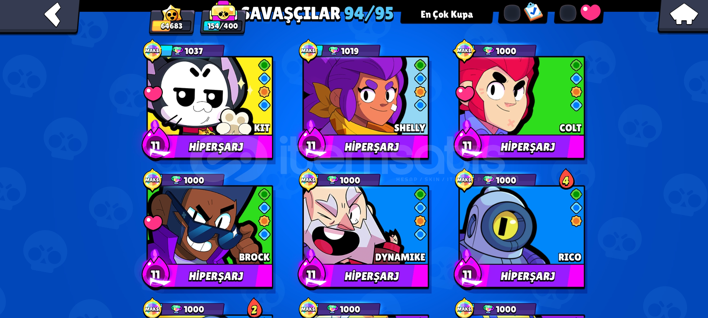 🚀 SATILIK MEGA Brawl Stars Hesabı! 🏆64.683 Kupa, Full Karakterler ve En Nadir Kostümler!Bu hesap, hem kupa hem de kozmetik koleksiyonu açısından çok zengin, üst düzey bir hesaptır. Hemen rekabete başlamak isteyenler için kaçırılmaz bir fırsat!⭐ Hesabın Öne Çıkan Özellikleri* Toplam Kupa: 64.683 Kupa! (Hesabın gücünü ve tecrübesini göst...