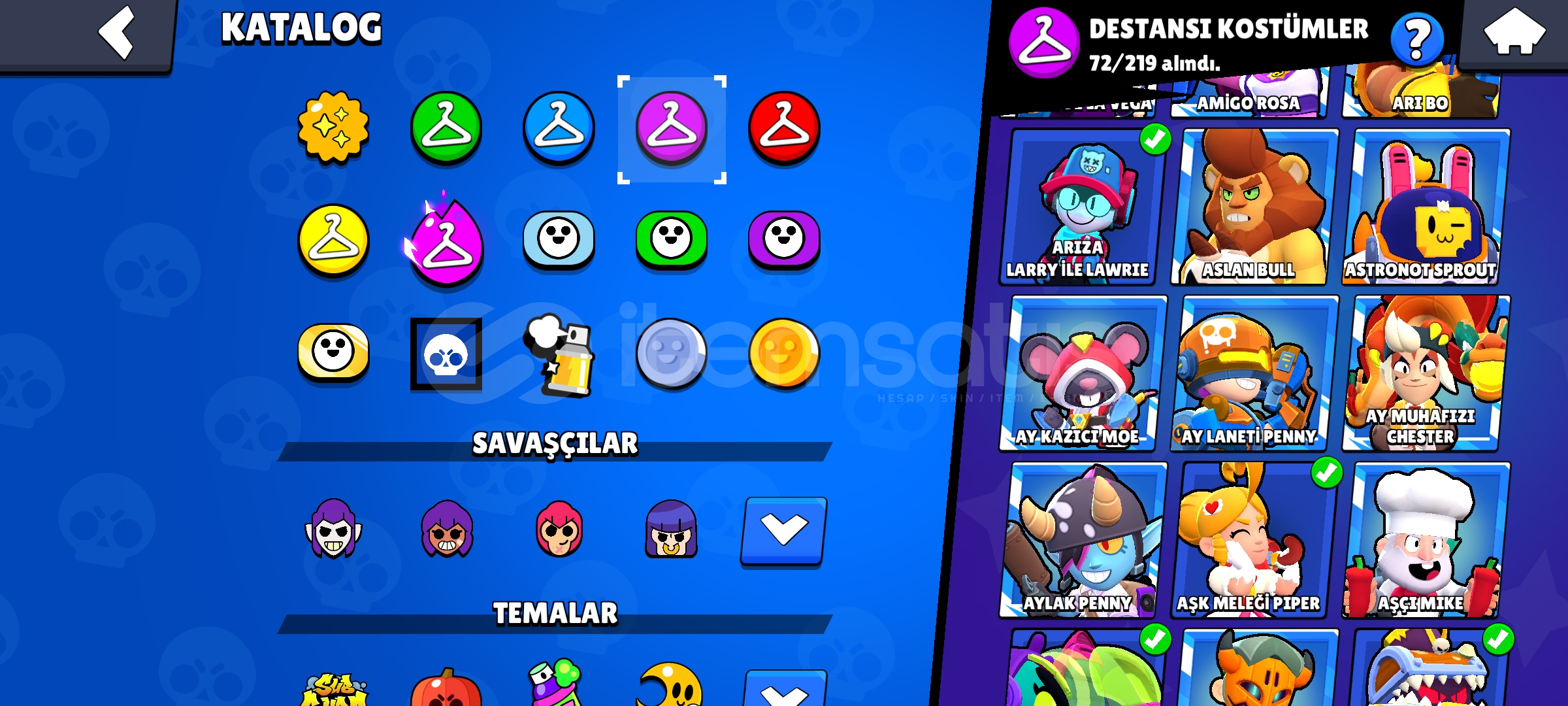 * Kozmetik Koleksiyonu: Hesapta ÇOK SAYIDA NADİR kostüm bulunmaktadır.