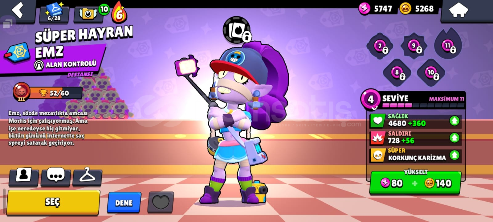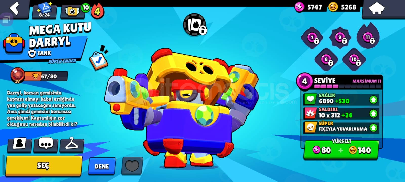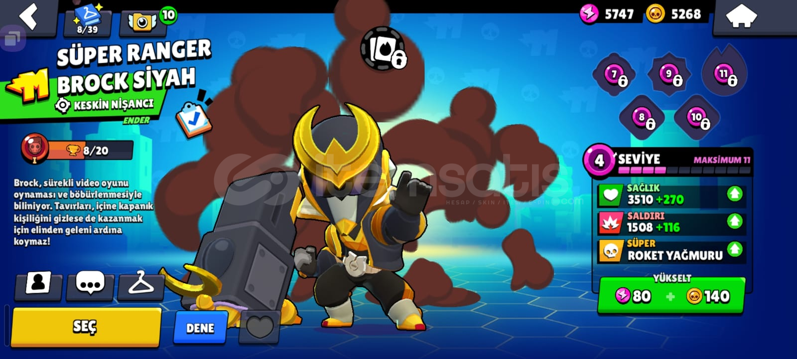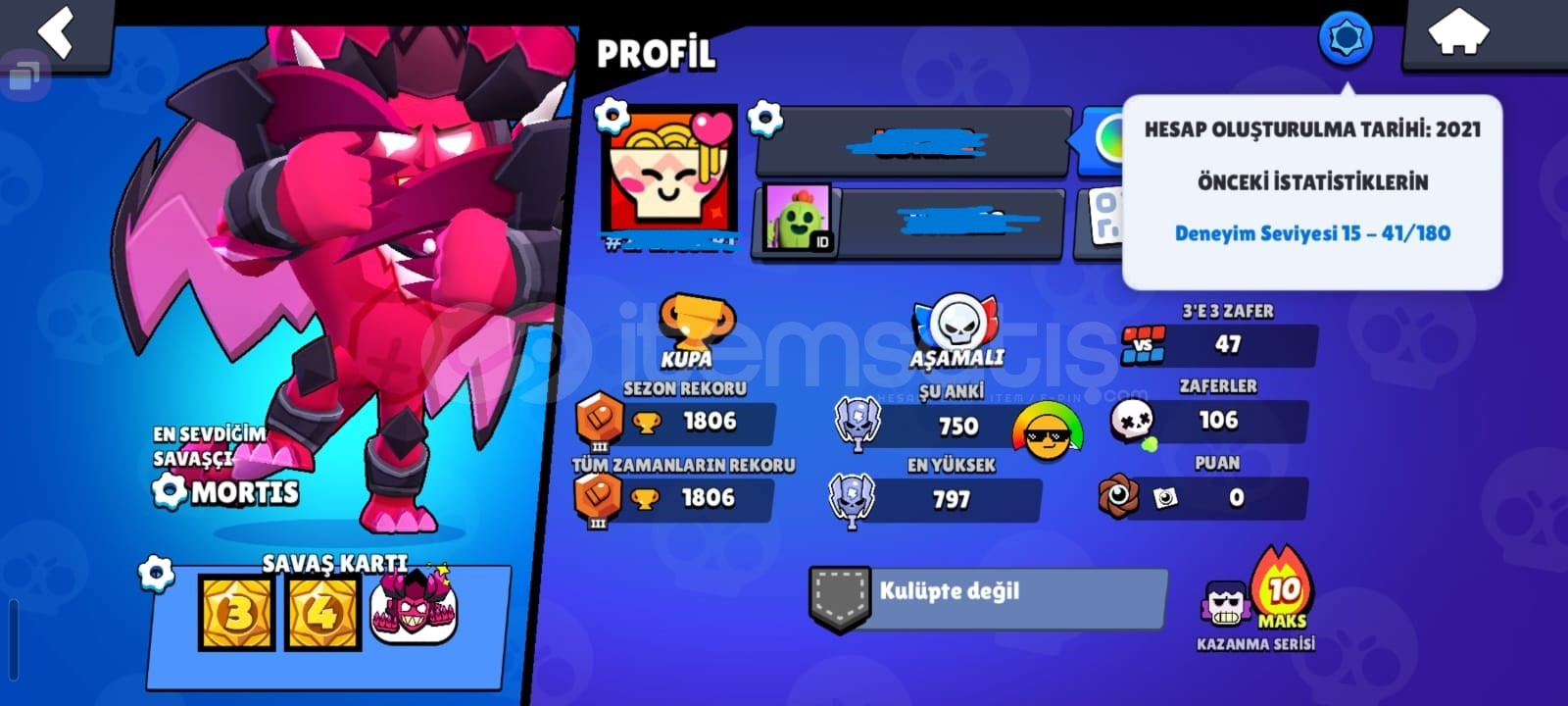 Hesapta 118 elmas, 10017 mücevher, 6268 altın vardır.1819 kupadır.7 süper ender, 7 destansı ve 1 hiperşarj skini vardır.Ücretsiz isim değiştirme hakkı mevcuttur.Hesabın bağlı olduğu mail adresi verilecektir.