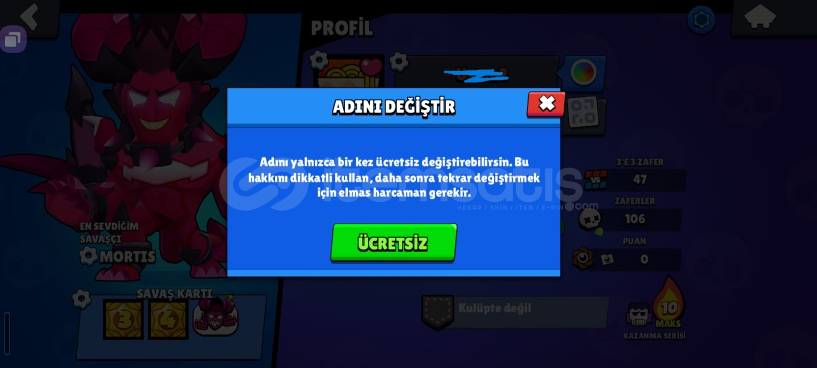 Ücretsiz isim değiştirme hakkı mevcuttur.