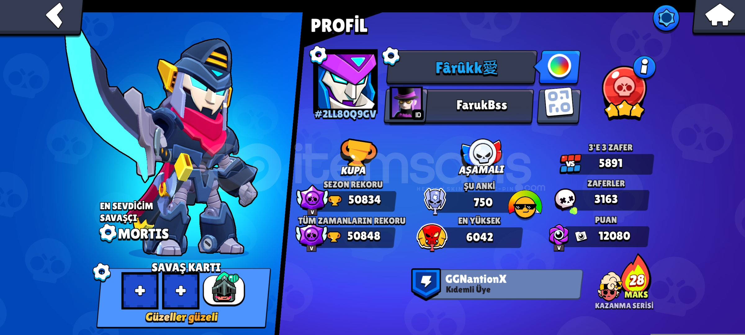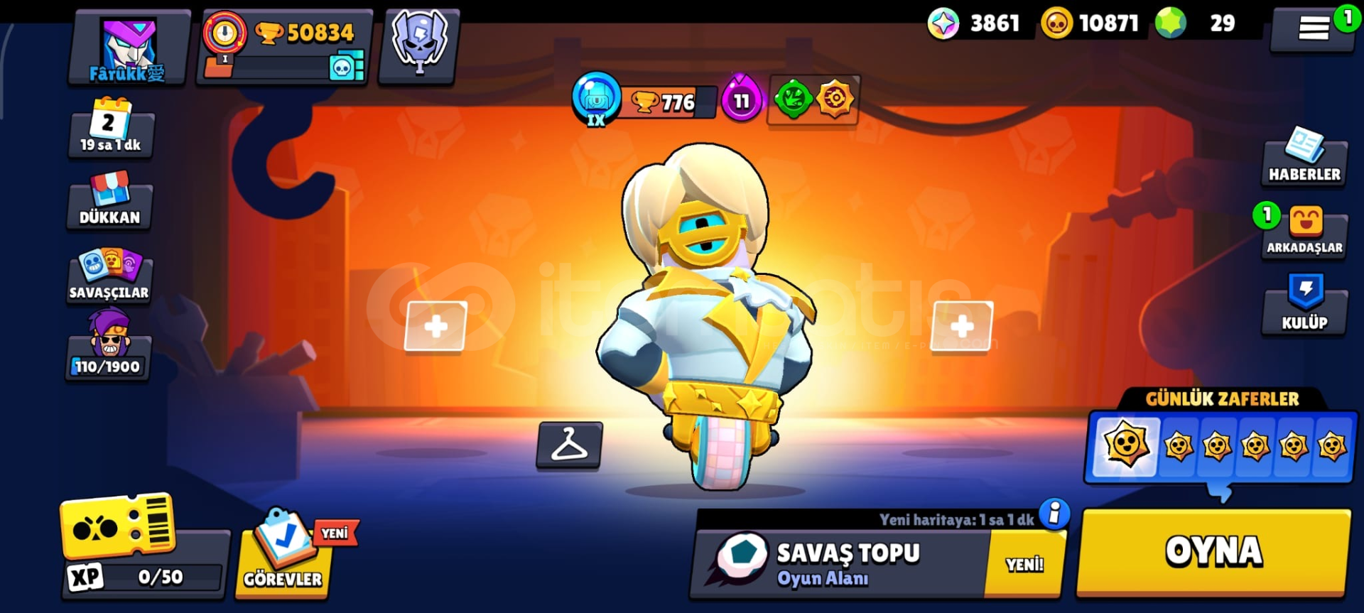 brawl stars hesabı 50 bin kupa tüm karakterler vardır kostümleri çoğu açıktır çok değerli hesaptır
