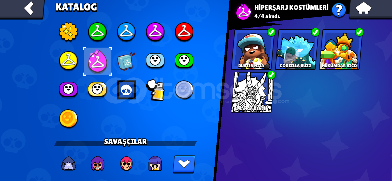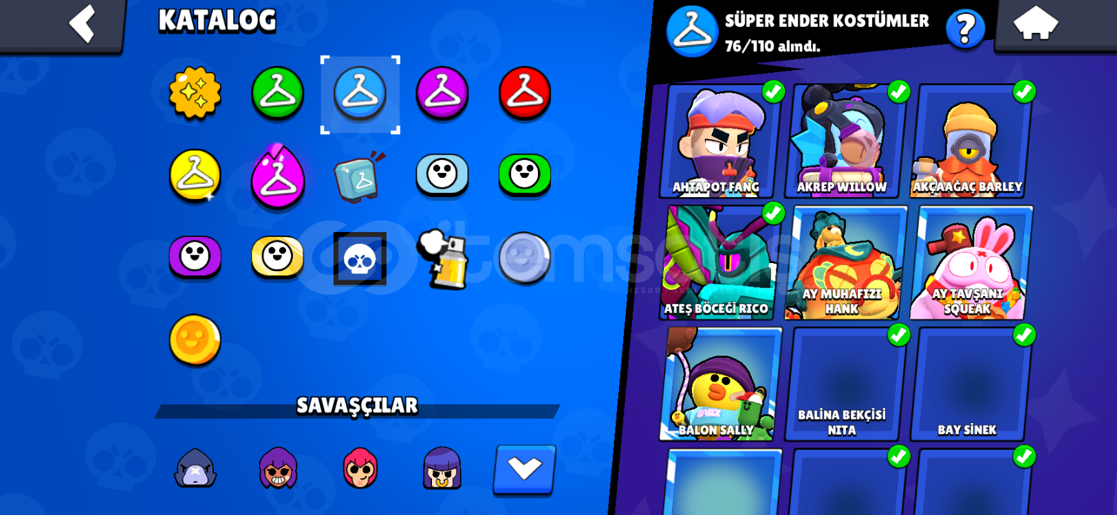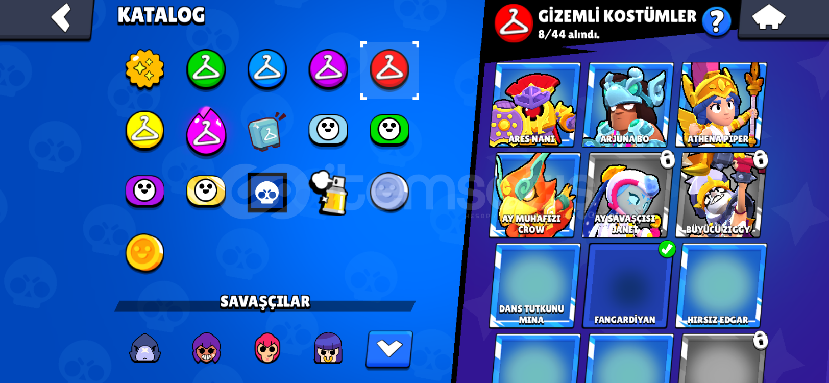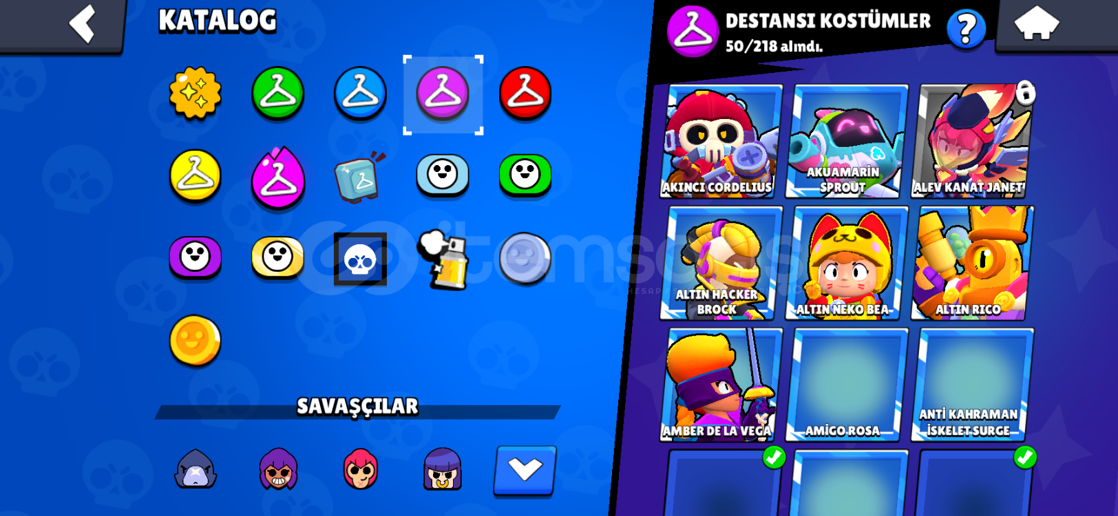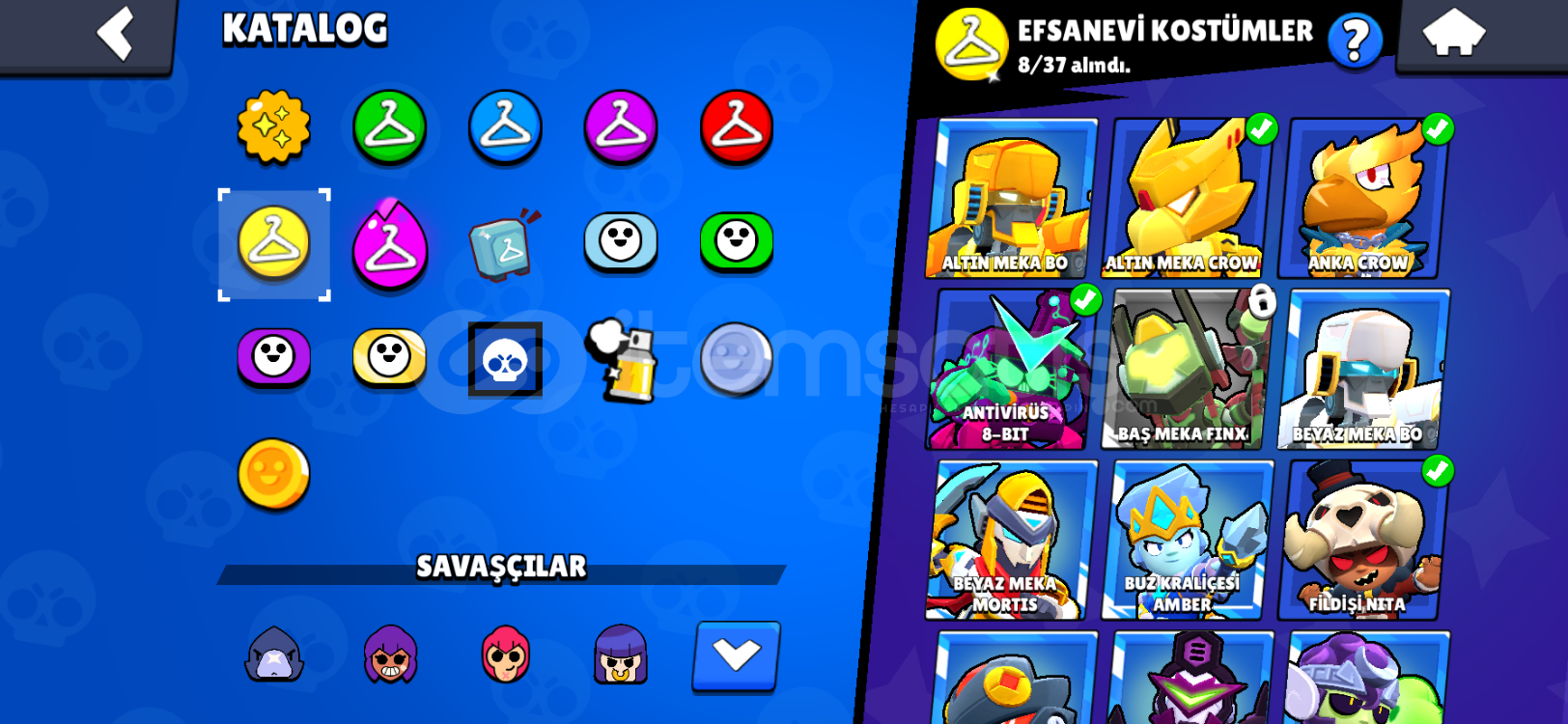 57200 kupa 8 efsanevi kostüm 8 gizemli kostüm 50 destansı 76 süper ender 60 ender kostüm 7 ünvan 25+ 1k savaş&ccedi...