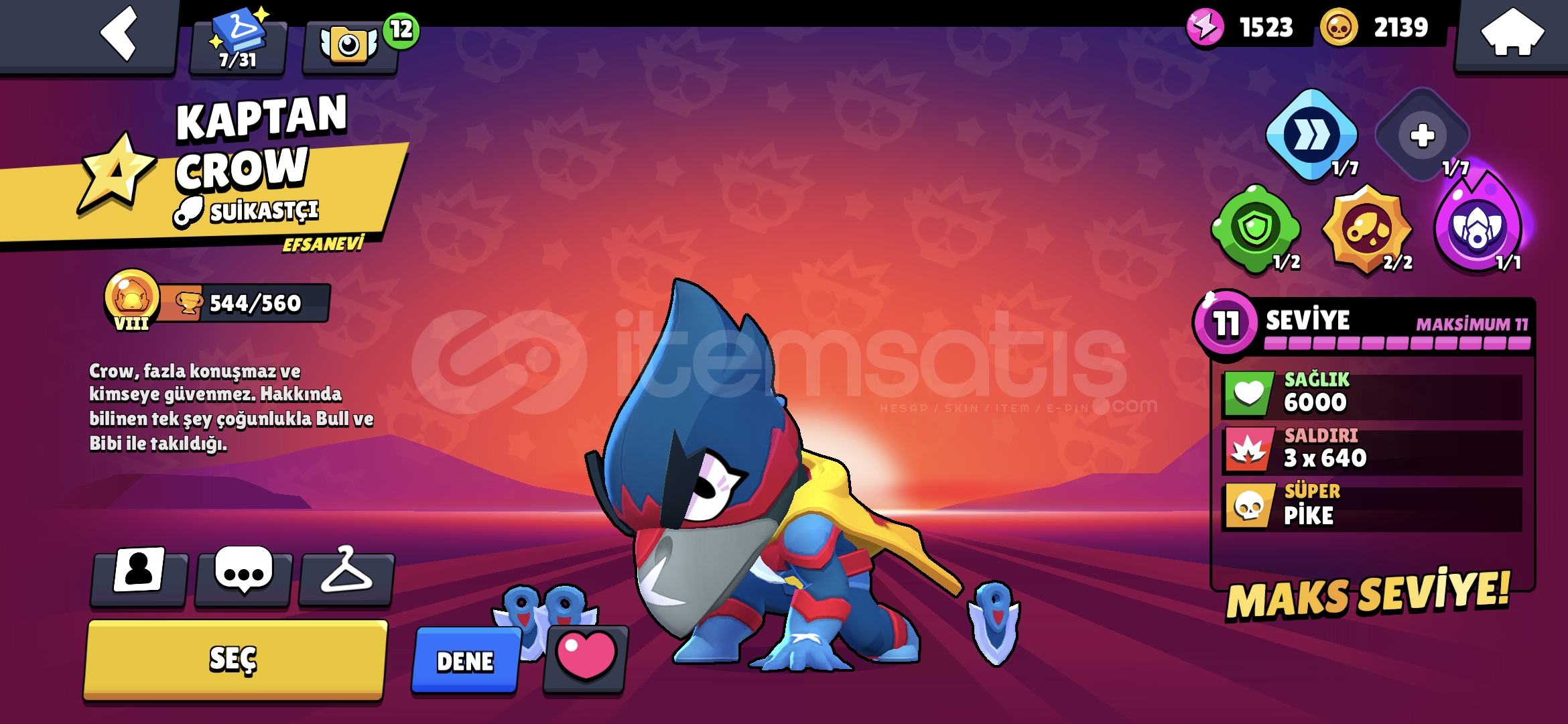 Hesapta 2 Karakter Hariç Hepsi Açıktır.El Emeği İle Kasılmıştır.5 6 Kere BattlePass Alındı.Mail Teslim Vardır.Her Karakterde %95 Bol Skinn.