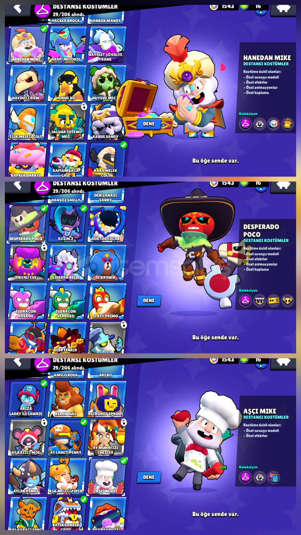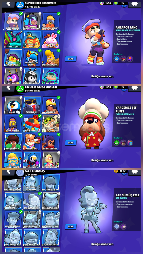 Merhabalar tr nin en dolu en dip fiyat hesabını satıyoruz!!!!!Hesabımızın içeriği:30400 kupa 55 ENDER KOSTÜM44 süper ender 29 destansı kostüm1 gizemli kostüm2 efsanevi kostüm2020 hesabı Diğer detaylar fotoğraflarda verilmiştirEN DOLU EN DİP FİYAT SADECE BİZDE!!