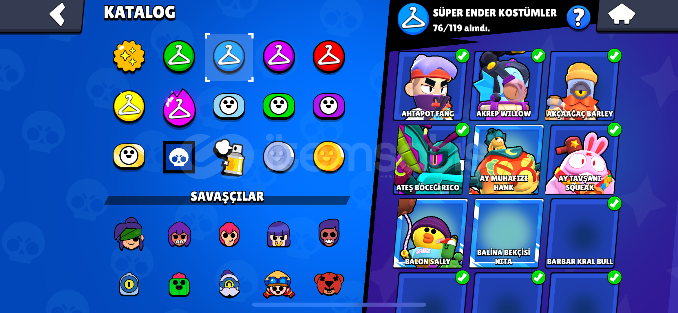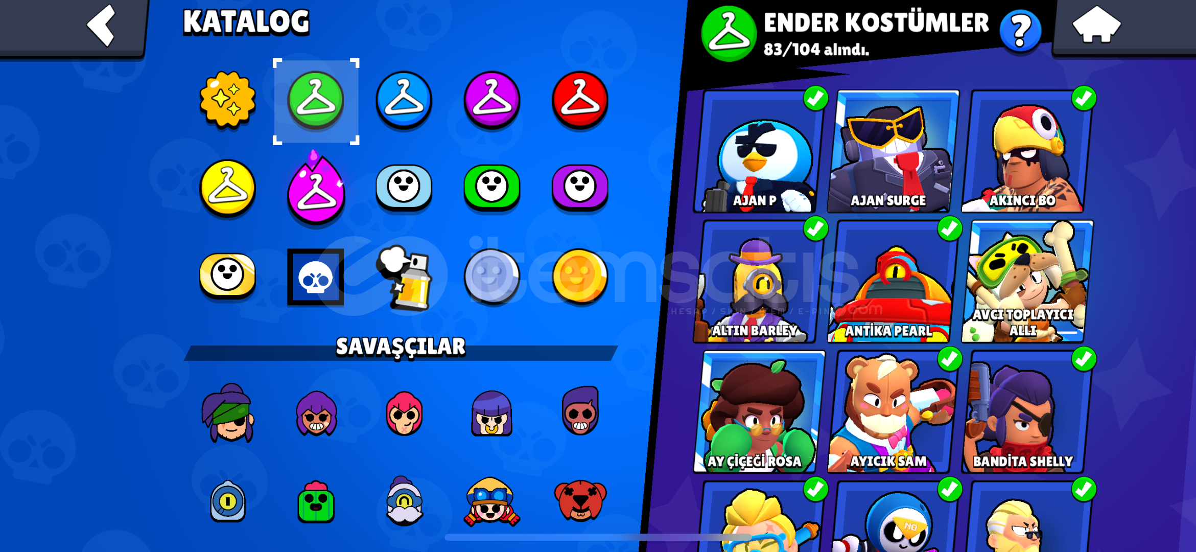 94/95 Karakteri vardır aktif olarak oynanmamaktadır 2019’dan 2024’e kadar aktif şekilde oynanmıştır 7 Yıllık hesaptır zamanında alınan sınırlı süreli skinleri vardır en nadide skinler hemen hemen her karakterde kostüm vardır zamanının en iyi hesaplarından en dolu hesaplarından vakit ayırırsanız full+full yapabilirsiniz hesabı.