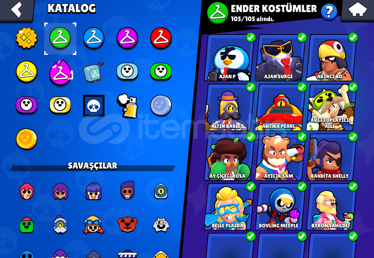 Hesabı bizzat kendim kurdum, doldurdum. 2019dan beridir var yok basıyorum.Ender ful süper ender çok az seoznluklardan eksik var 200 destansı 20 gizemli 25 efsoKarakterler 96/97 hepsi 11 aks yg full. Gigi açımadı sadece. Anlık 97250 1650 kupa otis alıp yarına prestij atılır.METEOR 3e 1kMASTER ATILDIMATCHERİNO, MÜCADELECİ COLT, KURT ADAM LEON, ELF PENNY, VİRÜS 8BİT(ESKİ) VE DAHA PEK ÇOK E...