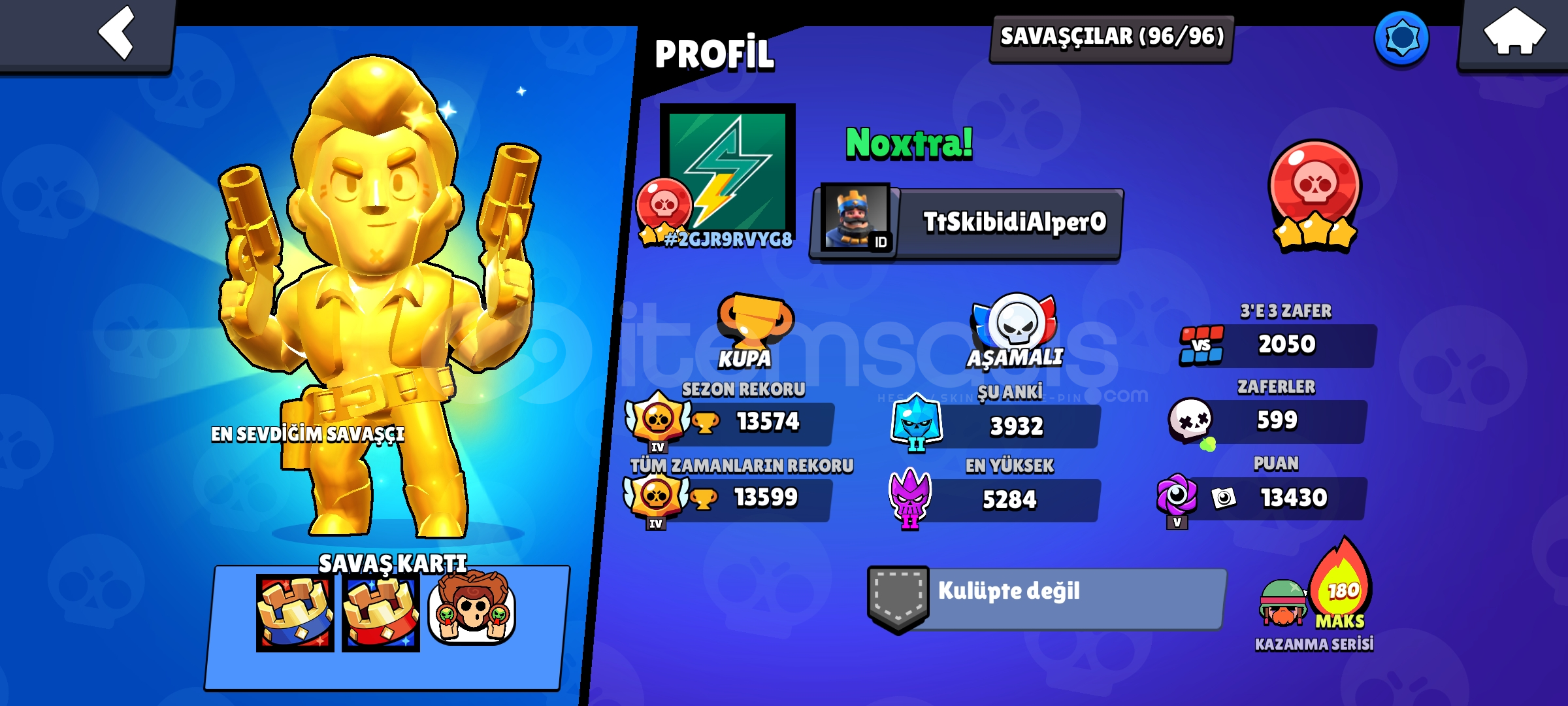 🎮 Brawl Stars Full Hesap Satılık!✨ Hesap Özellikleri:Süleyman Serin videosunda çıkan özel hesaptır.Tüm karakterler açık!Şu anda Brawl Pass aktif.34 Efsanevi kostüm, 32 Gizemli kostüm mevcut.2 Kral Frank kostümü bulunuyor.20 adet altın kostüm var.22.000 altın mevcut.Hesapta çok iyi oyuncular arkadaş olarak ekli.💥 Hesap tamamen dolu, aktif ve özel bir hesapt...