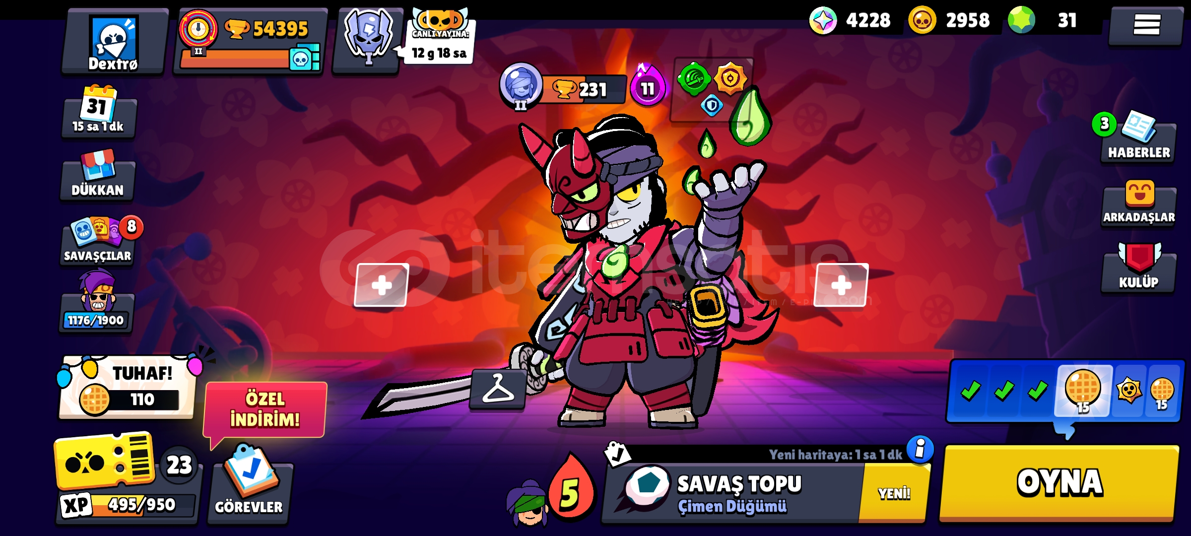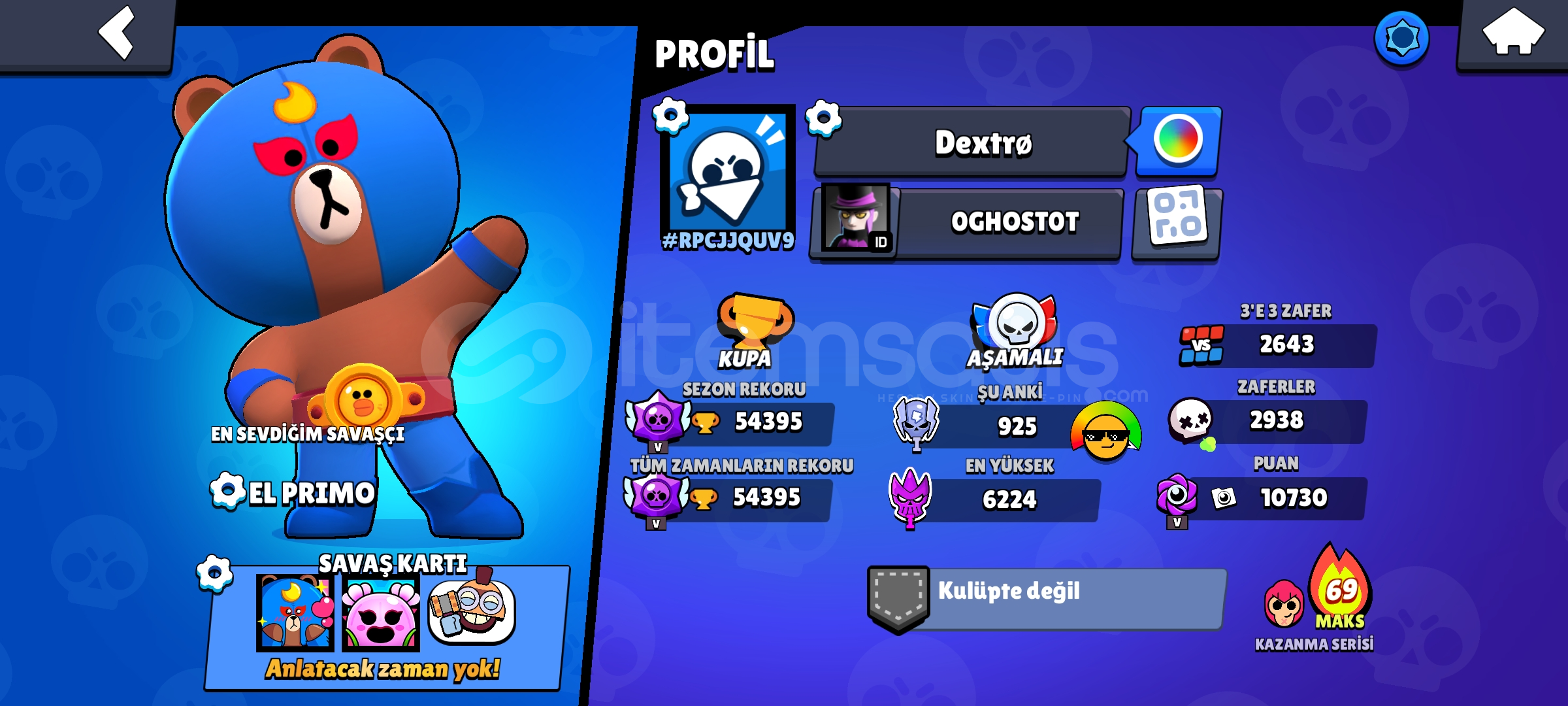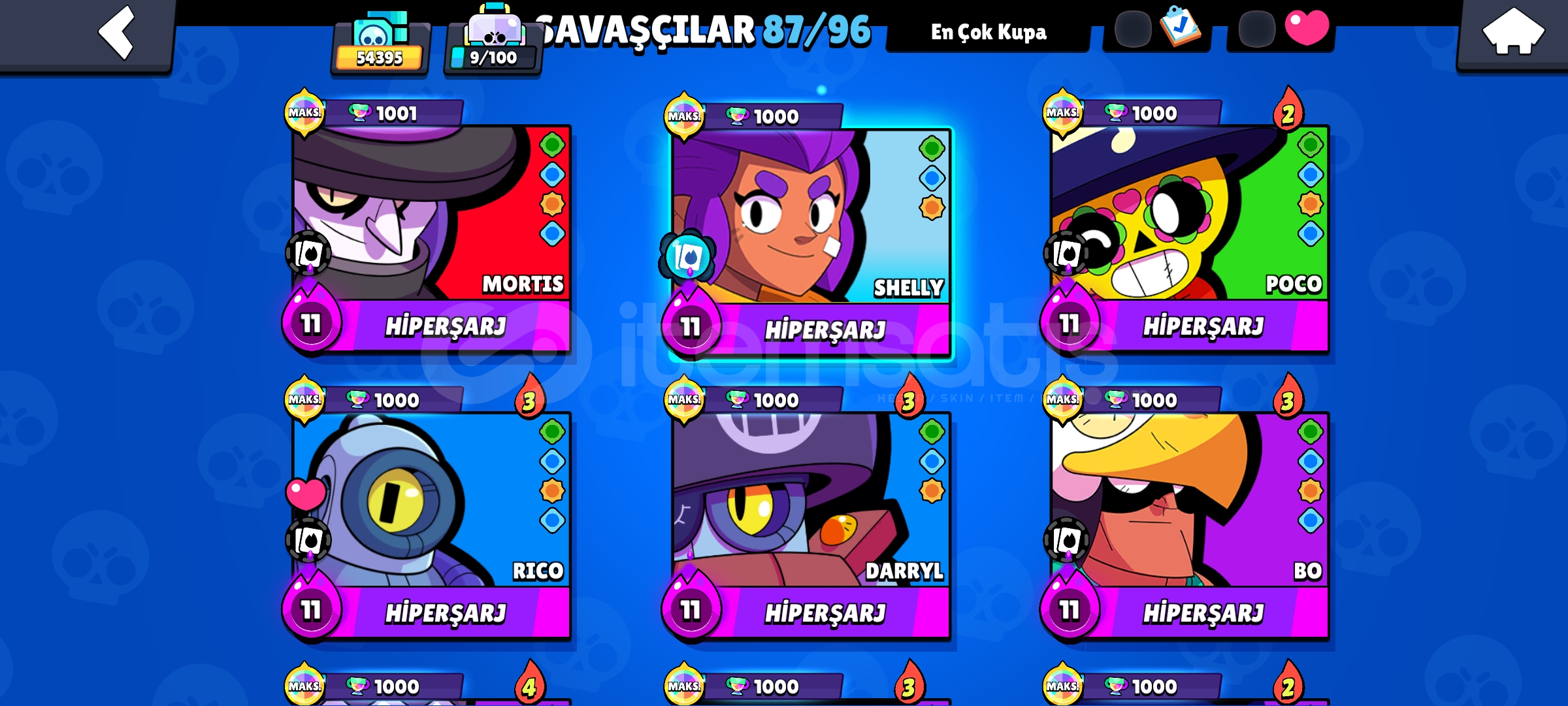 BU FİYATA BÖYLE BİR HESAP YOK!54307 KUPA 96 KARAKTERDEN 87 si açık 73 ender kostüm 65 süper ender kostüm 56 destansı 5 gizemli 2 efsanevi kostüm Şok fiyata gidiyorPAZARLIK VARDIR ARKADAŞLAR16 HİPERŞARJLI KARAKTERMAKSİMUM SEVİYEDE 8 KARAKTER35 KARAKTER MAKSİMUM SEVİYE 11-10-9 İÇİNDEDİR DOSTA GİDER ALANA HAYIRLI UĞURLU OLSUN