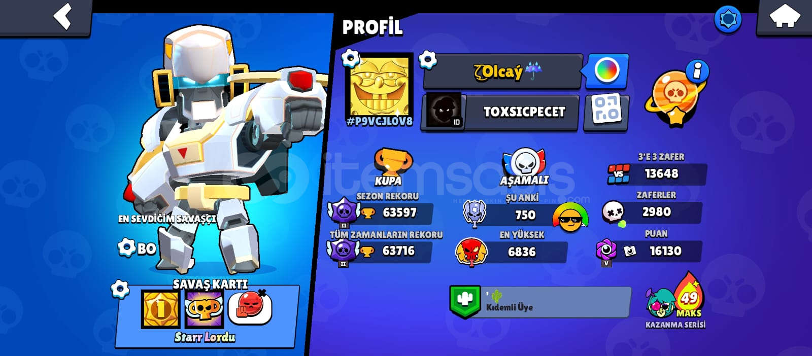 63k Kupalı 2019 Tarihli Hesap 11 Unvanlı 2 Sezon Efsanevi’ye cıkmış Nadir Kostümlerin Olduğu Satürün Şöhreti 1’e Kadar Cıkmış hesap--------------- Max 1K KUPA KARAKTER : 44———————————HİPERJARZ ULAŞMIŞ KARAKTERLER : 34———————————MAXS KARAKTERLER : 47-—&mda...