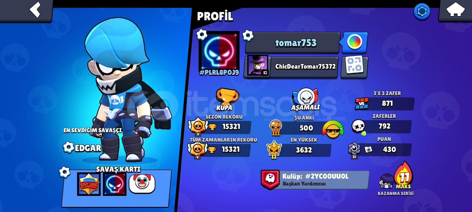 Hesabın 15k kupası vardırOluşturma hesabı 2020 sırHesapta 39 karakter vardır