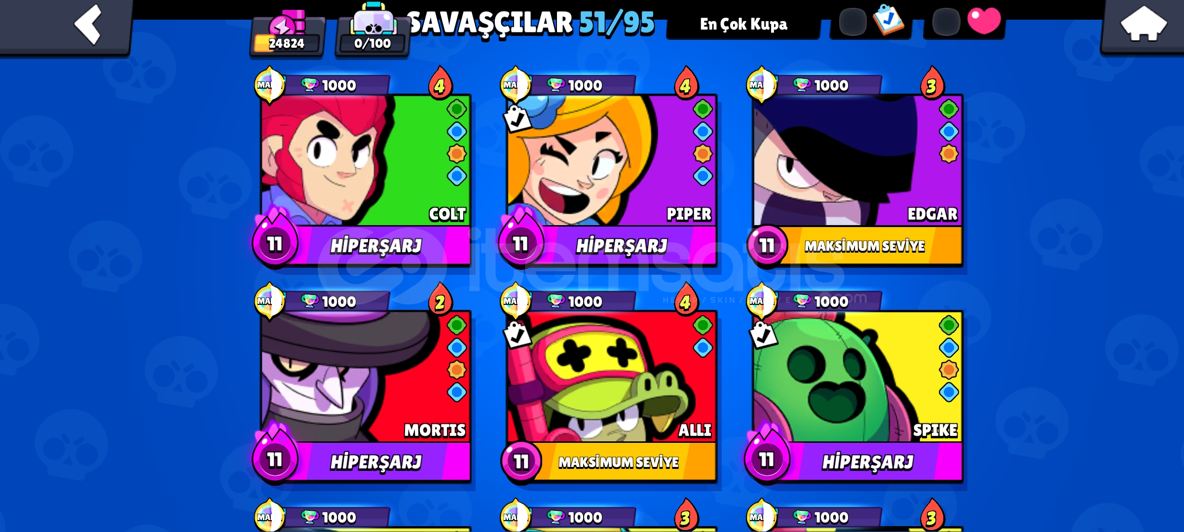 25k kupa 11 tane 1000 kupa 8 tane efsanevi karakter ve 51 karakter
