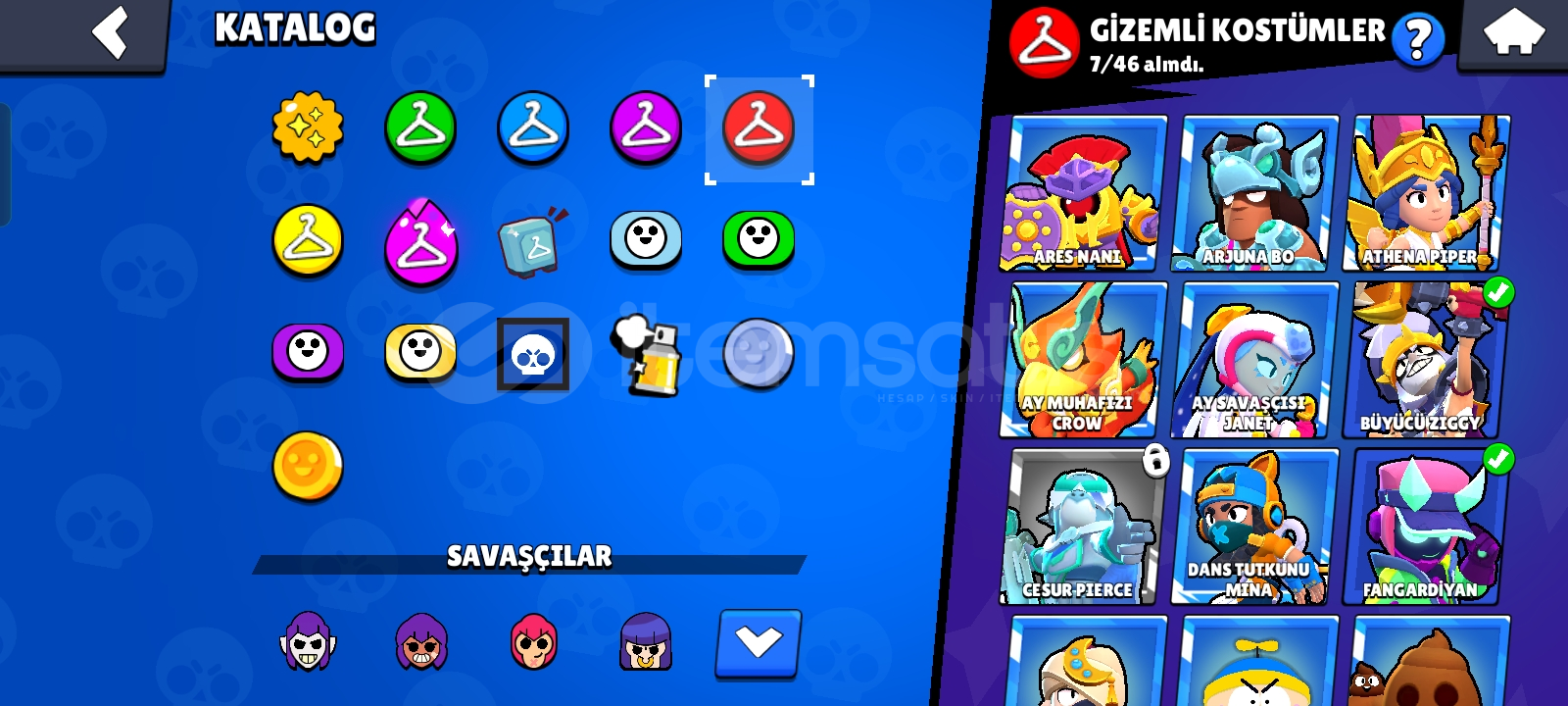 Hiper Şarj40 Tane1000 Kupa Karakter42 TaneElmas80+Hiper Şarjlı Kostüm3Efsanevi Kostüm4Clash Royale +Hay Day +Hesap Gmail'e Ba...