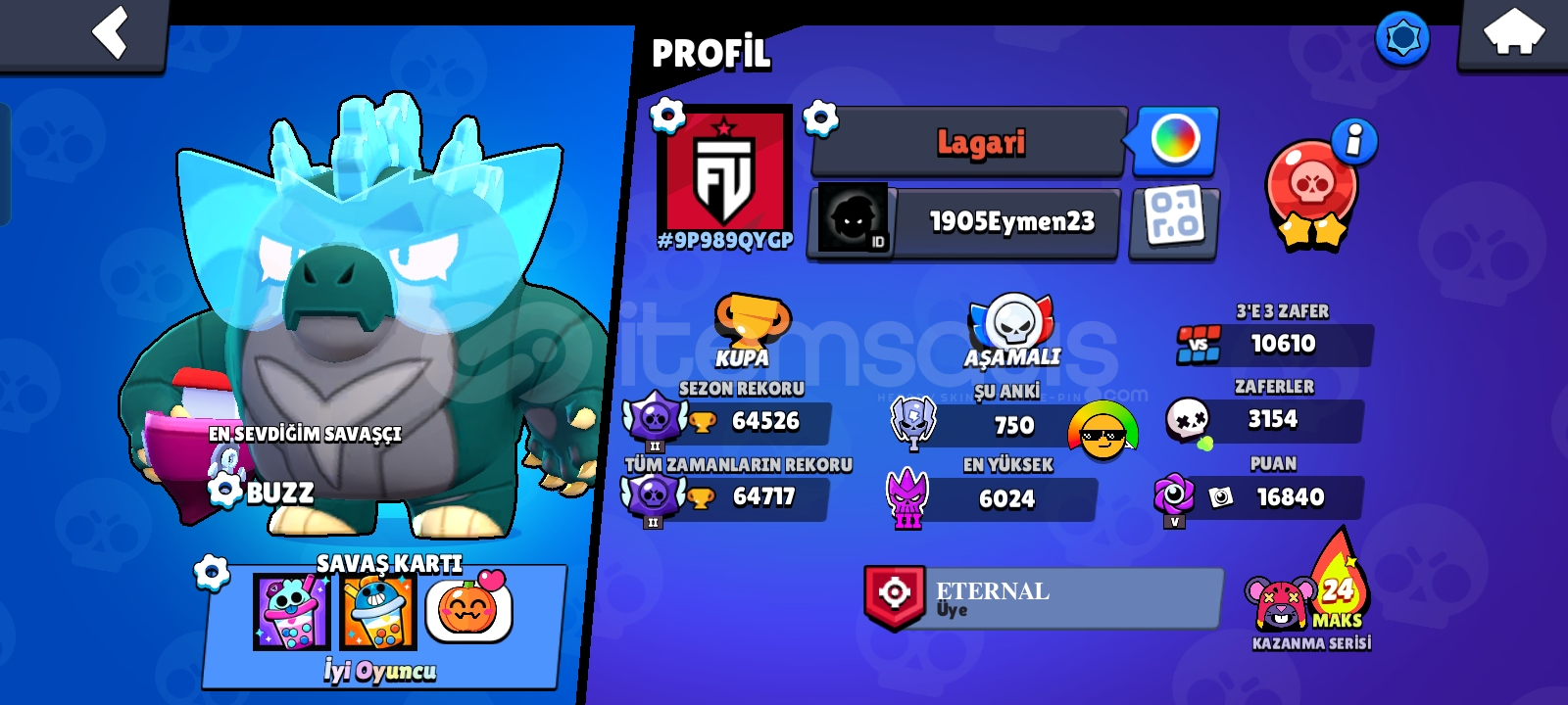 Hiper Şarj40 Tane1000 Kupa Karakter42 TaneElmas80+Hiper Şarjlı Kostüm3Efsanevi Kostüm4Clash Royale +Hay Day +Hesap Gmail'e Bağlıdır.Hesabın Maili Ve Şifresi Size Verilecektir.Son Olarak Hesap Güvenliği İçin Mailin Şifresini Değiştirin.Pazarlık Yoktur !!!