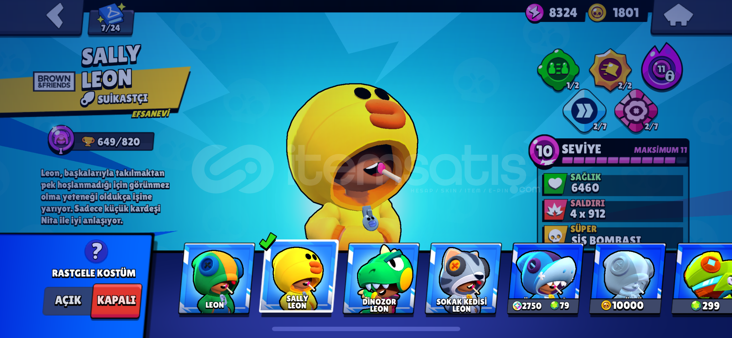 PAZARLIK PAYI AZ DA OLSA VARDIR UCUZA BRAWL STARS HESABI 8 ender10 süper ender19 destansı 8 gizemli 6 efsanevi52/95 karakterbir sürü kostüm!!