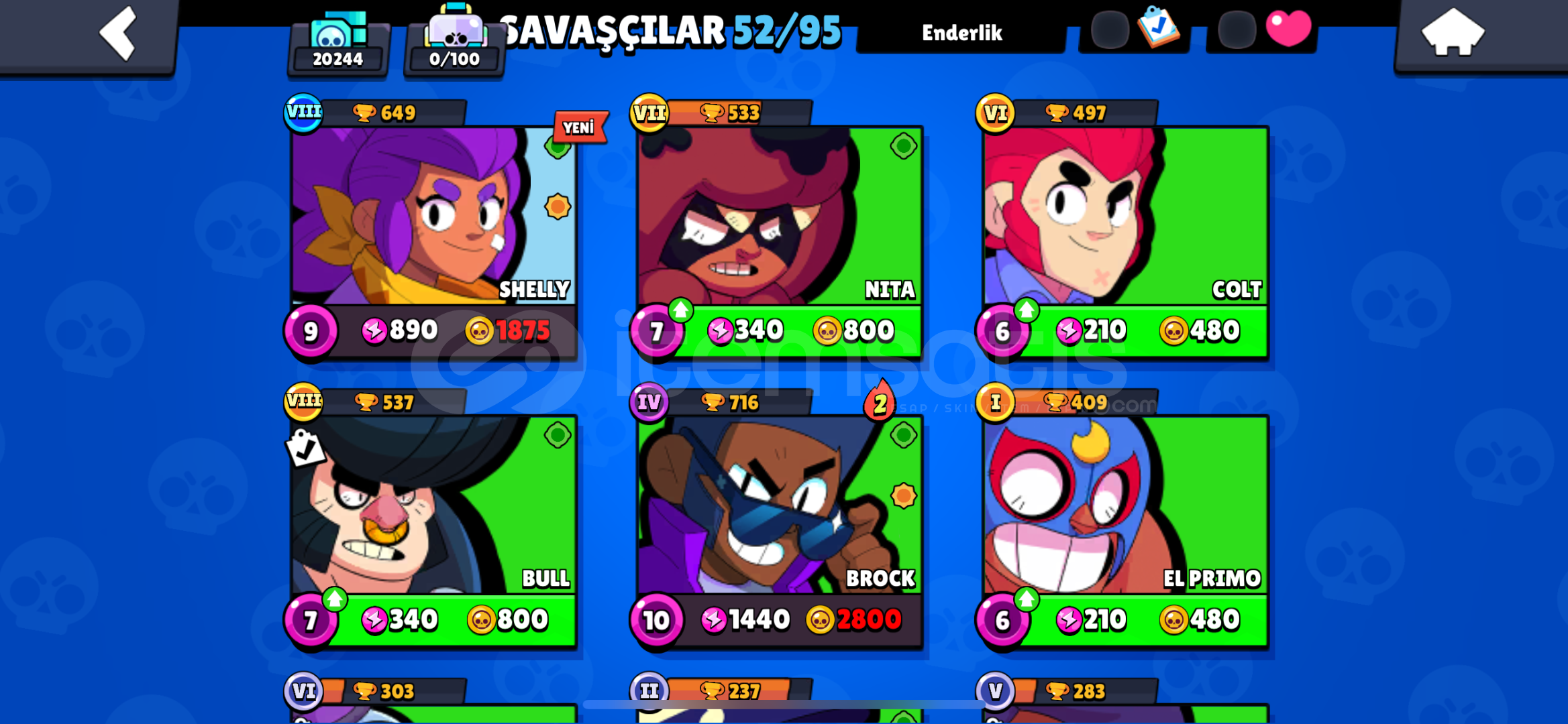 PAZARLIK PAYI AZ DA OLSA VARDIR UCUZA BRAWL STARS HESABI 8 ender10 süper ender19 destansı 8 gizemli 6 efsanevi52/95 karakterbir sür&uum...