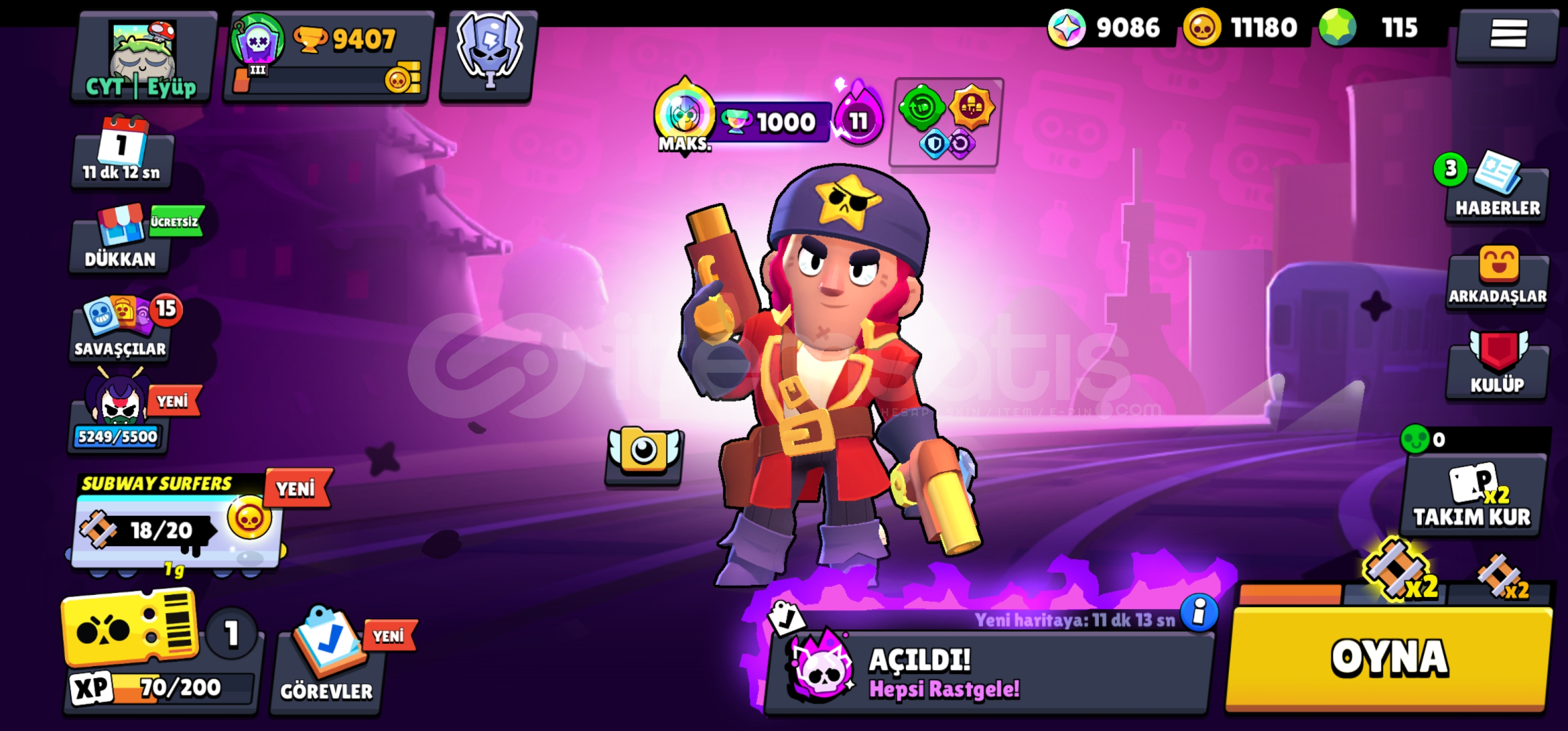 Hesapta 54 karakter bulunmaktadır ve 2 karakter maks. Rütbe dir