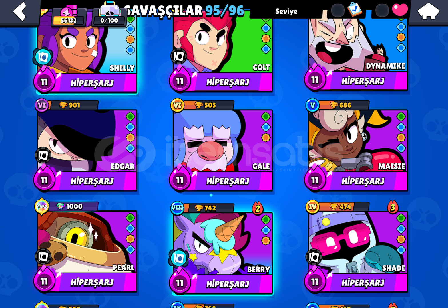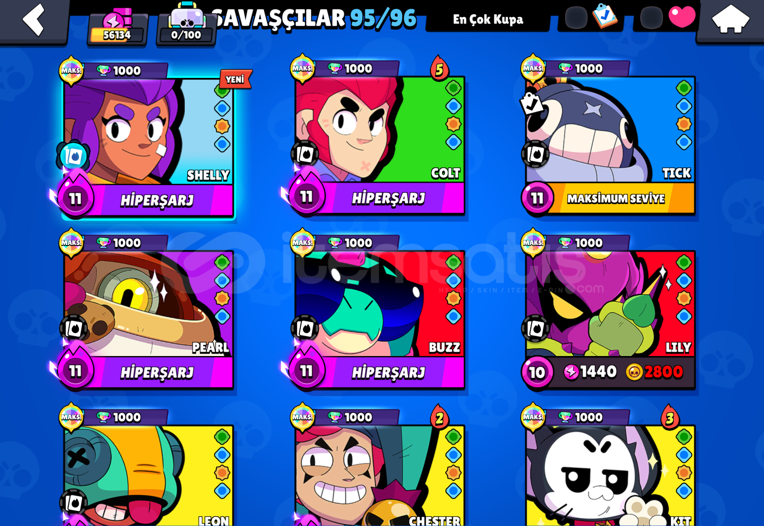 95 karakter ve 1k kuapalı karakterleri vardır hesapda ziggy karakter eksiktir sadece oda hemen çıkar hesaba girmediğimden kullanmadığımdan satıyom