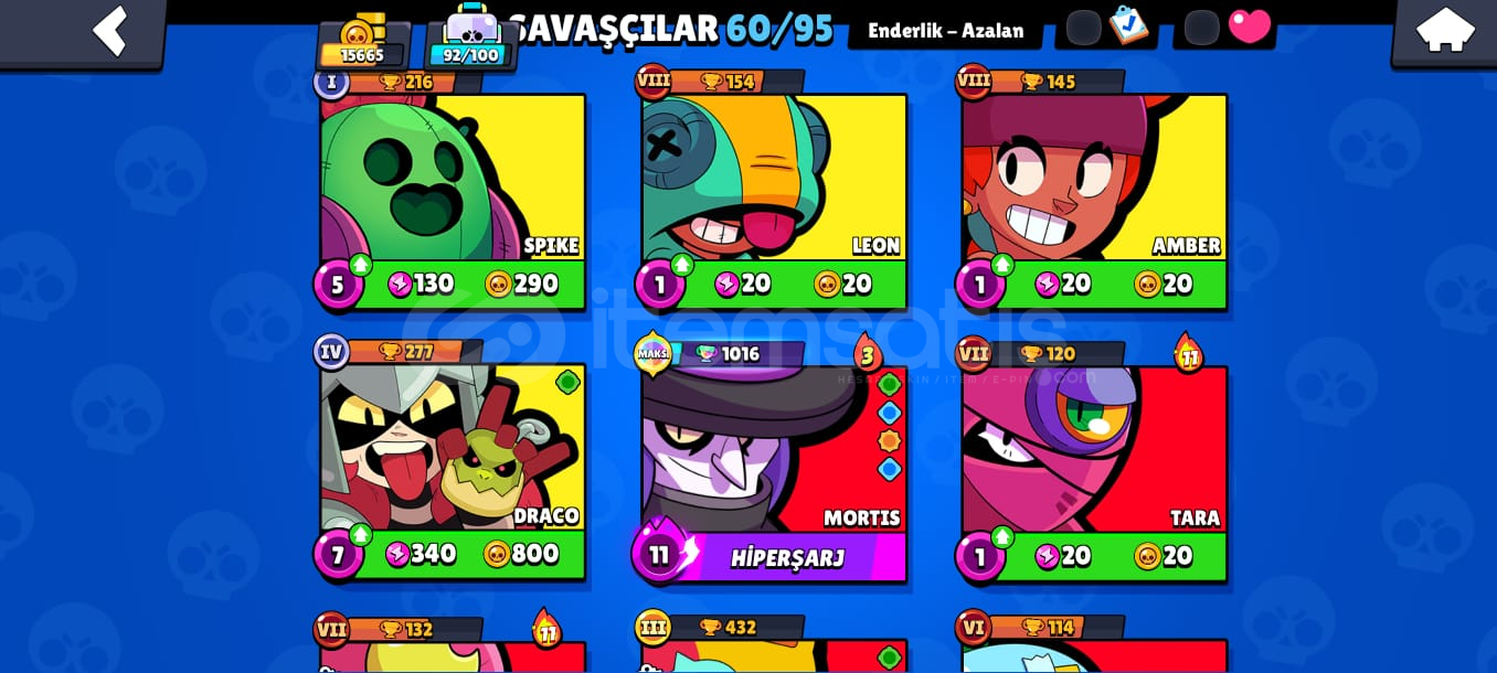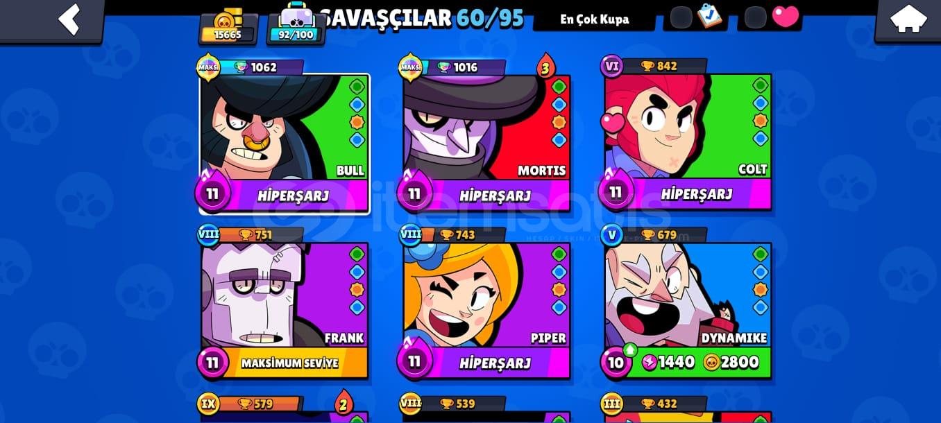 75 skin mevcuttur 2 adet 1000 kupa üzeri karakter60 karakter 15665 kupa vardır