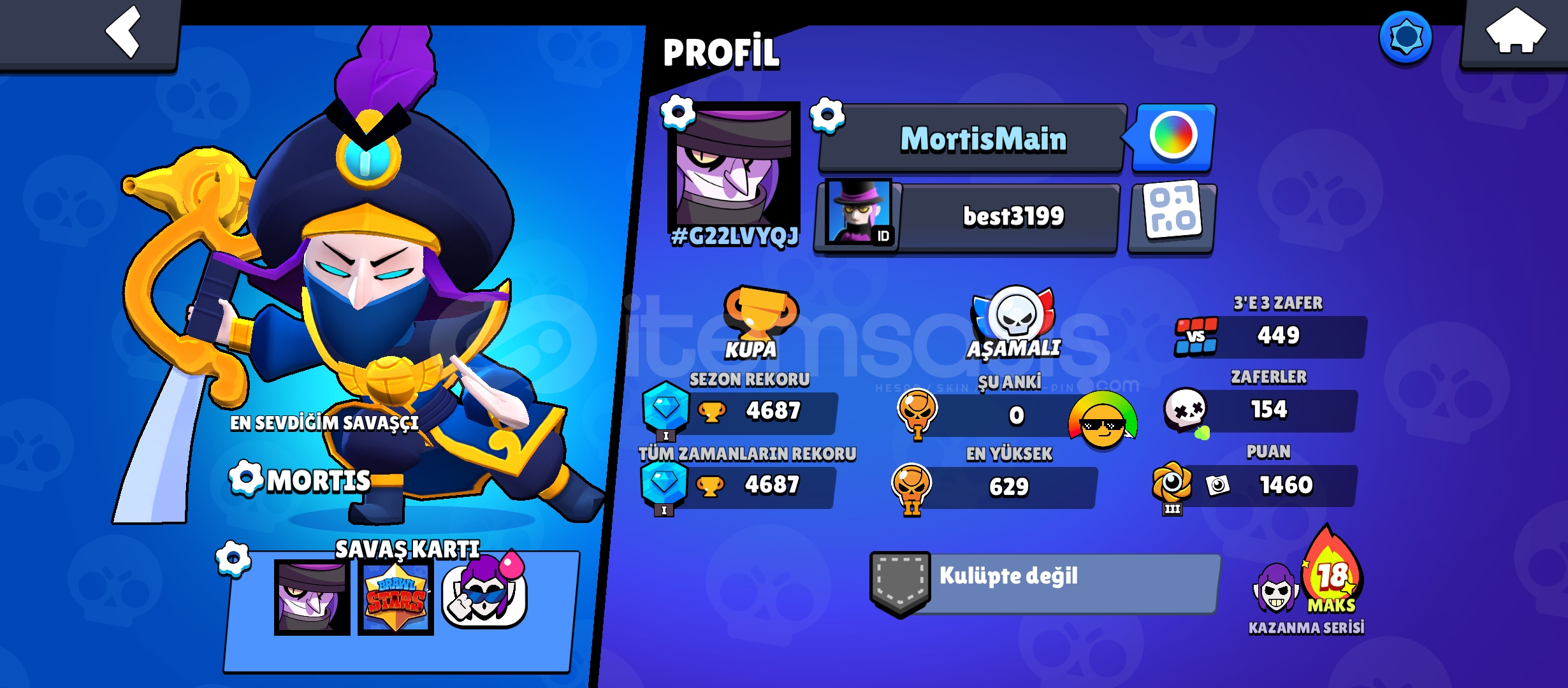UYGUNA 1k MORTİSLİ KOSTÜMLÜ BRAWL STARS HESABI