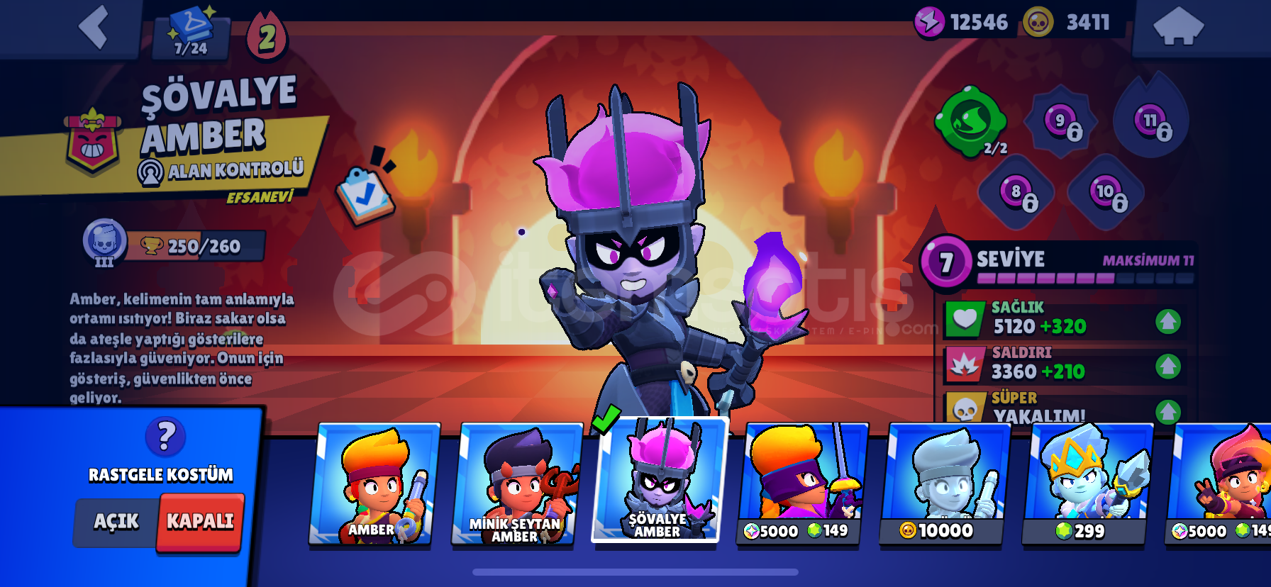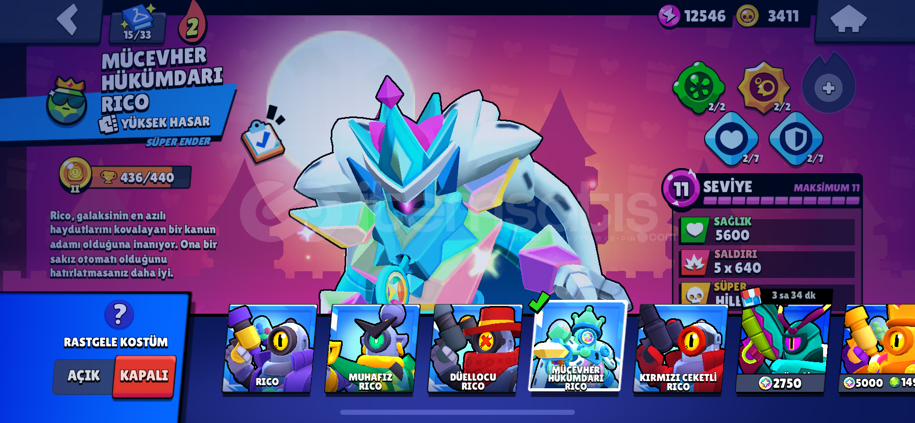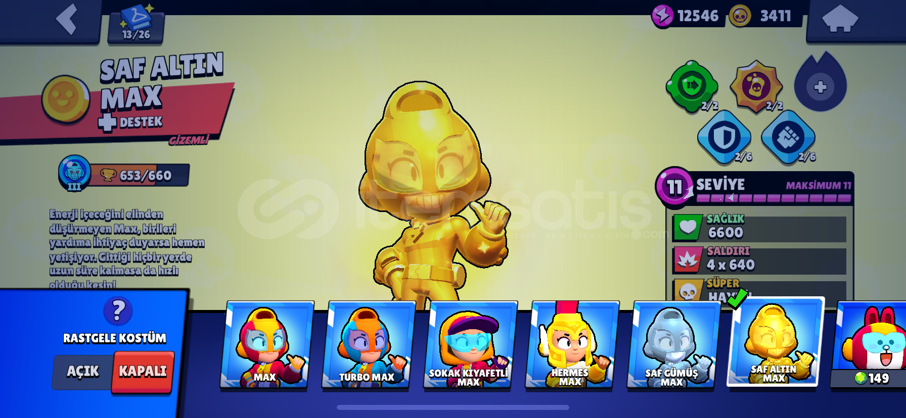 ve her karaktere ait en az 1 tane gizemli kostüm vardır hesapta.