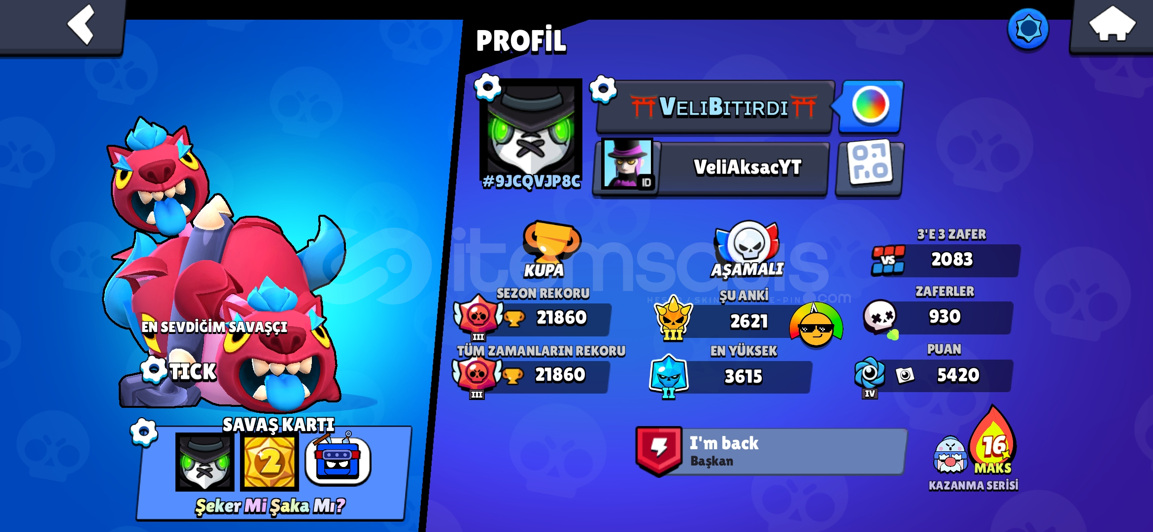 Hesap;21k kupadırHesapta; hesap 2020 hesaptır25 Ender kostüm19 Süper Ender Kostüm21 Destansı Kostüm4 Gizemli kostümClash Royale hesapta var Clash Royale hesapta 777 taş var