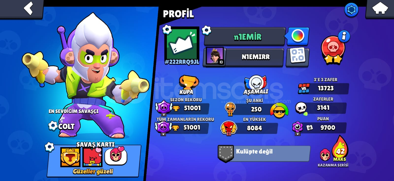 🏆 51.000 KUPA⚔️ 89 SAVAŞÇI 🎨 51 ENDER 65 SÜPER ENDER 37 DESTANSI 1 GİZEMLİ 5 EFSANEVİ KOSTÜM🤩 120 SIRADAN 44 ENDER 35 DESTANSI 272 KOLEKSİYONER ROZET 🖼️ 255 OYUNCU SİMGESİ 🔥 19HİPERLİ MAX SAVAŞÇI ⏫37 MAX SAVAŞÇI 🤺 3 ÜNVAN🌟Hesap 2020 Yılı Hesabıdır Hali Hazırda 144 Taş 7600 Mücevher Vard&#...