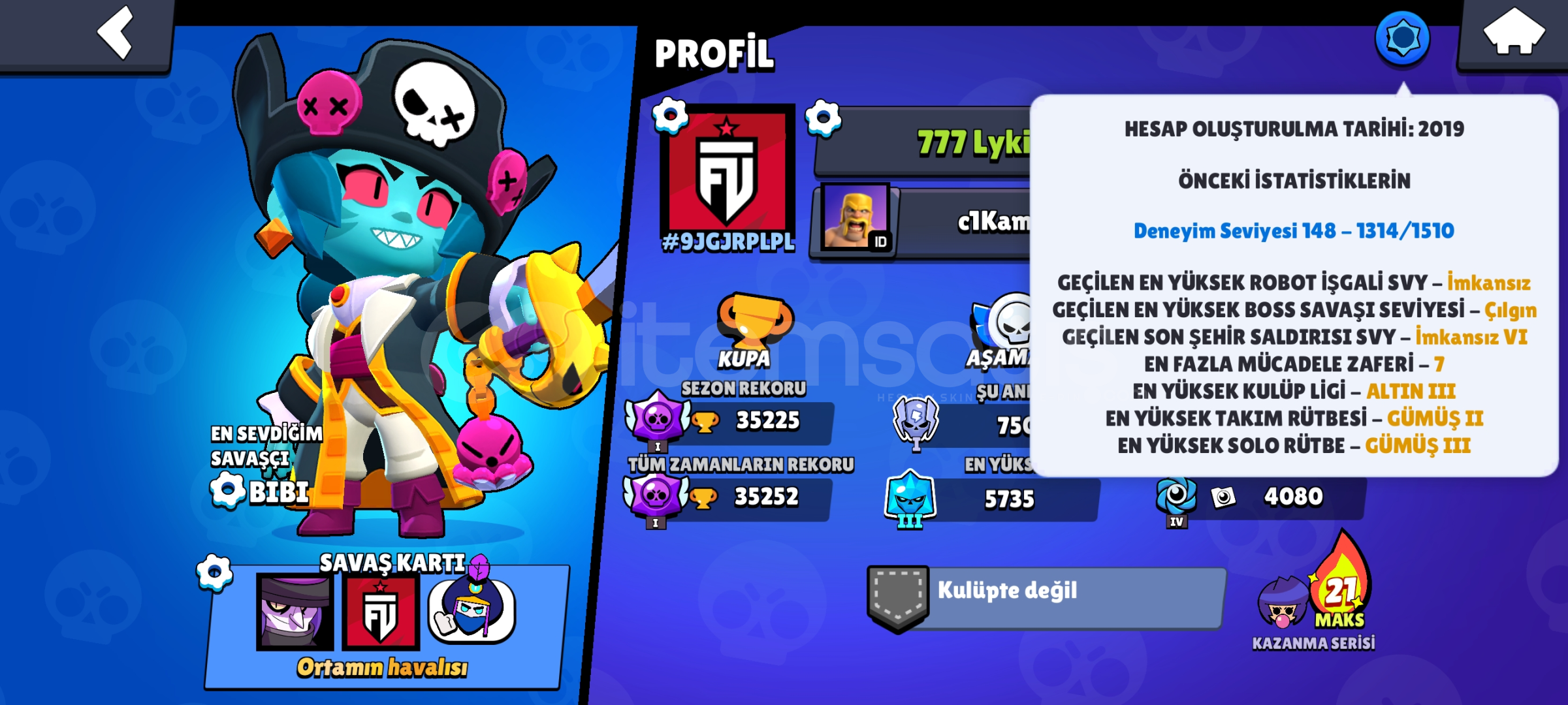(pazarlık var)Ayrıntılar videolarda varBrawl stars vidosuhttps://streamable.com/0k0er2Clas royle ve clas Of clans videosuhttps://streamable.com/38rr21MmHesapları cr coc bs katoloklarına koyduğum için aynı 3 ilan var biri satıldığında diğerleride ilandan kaldırılacak