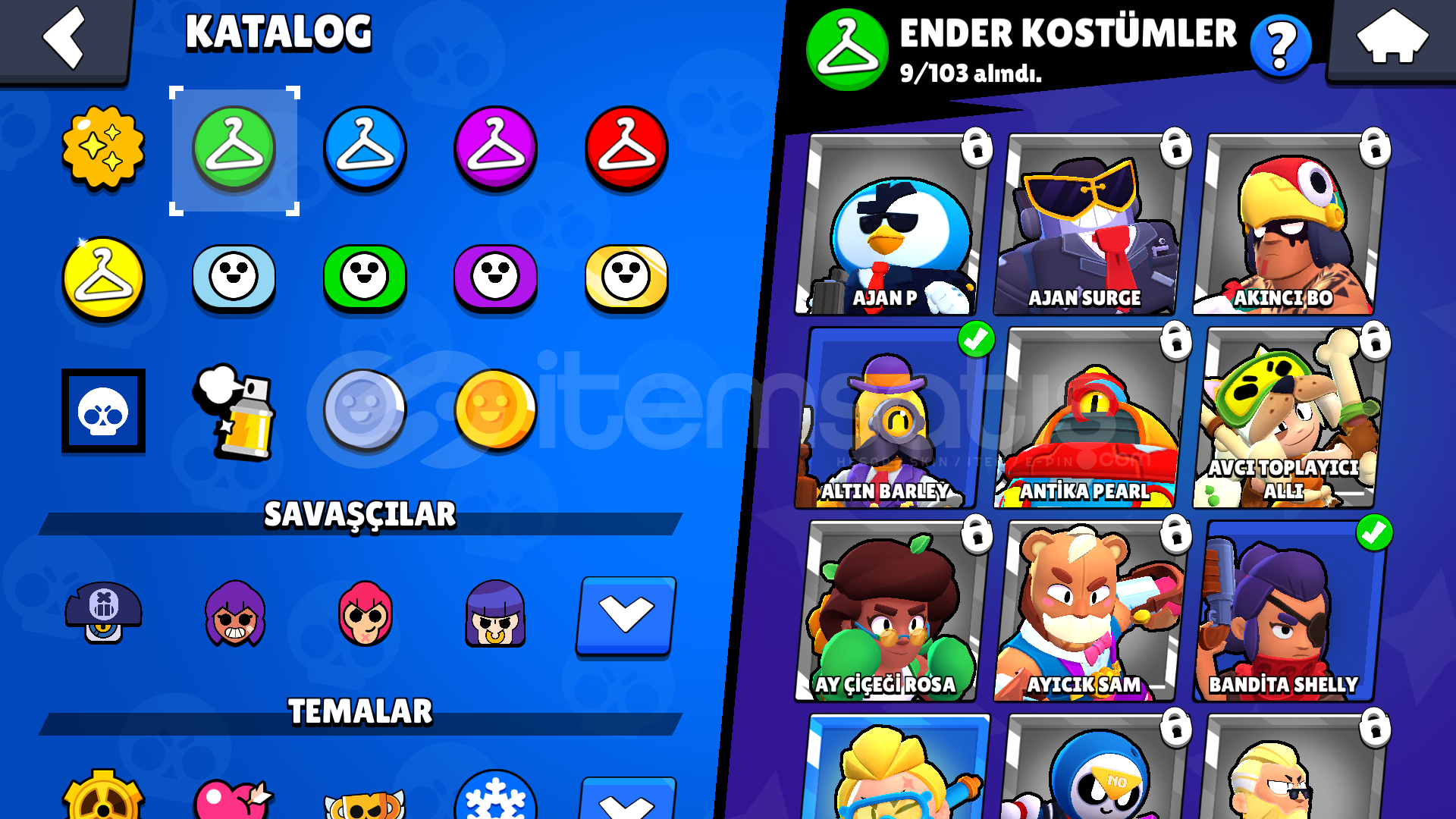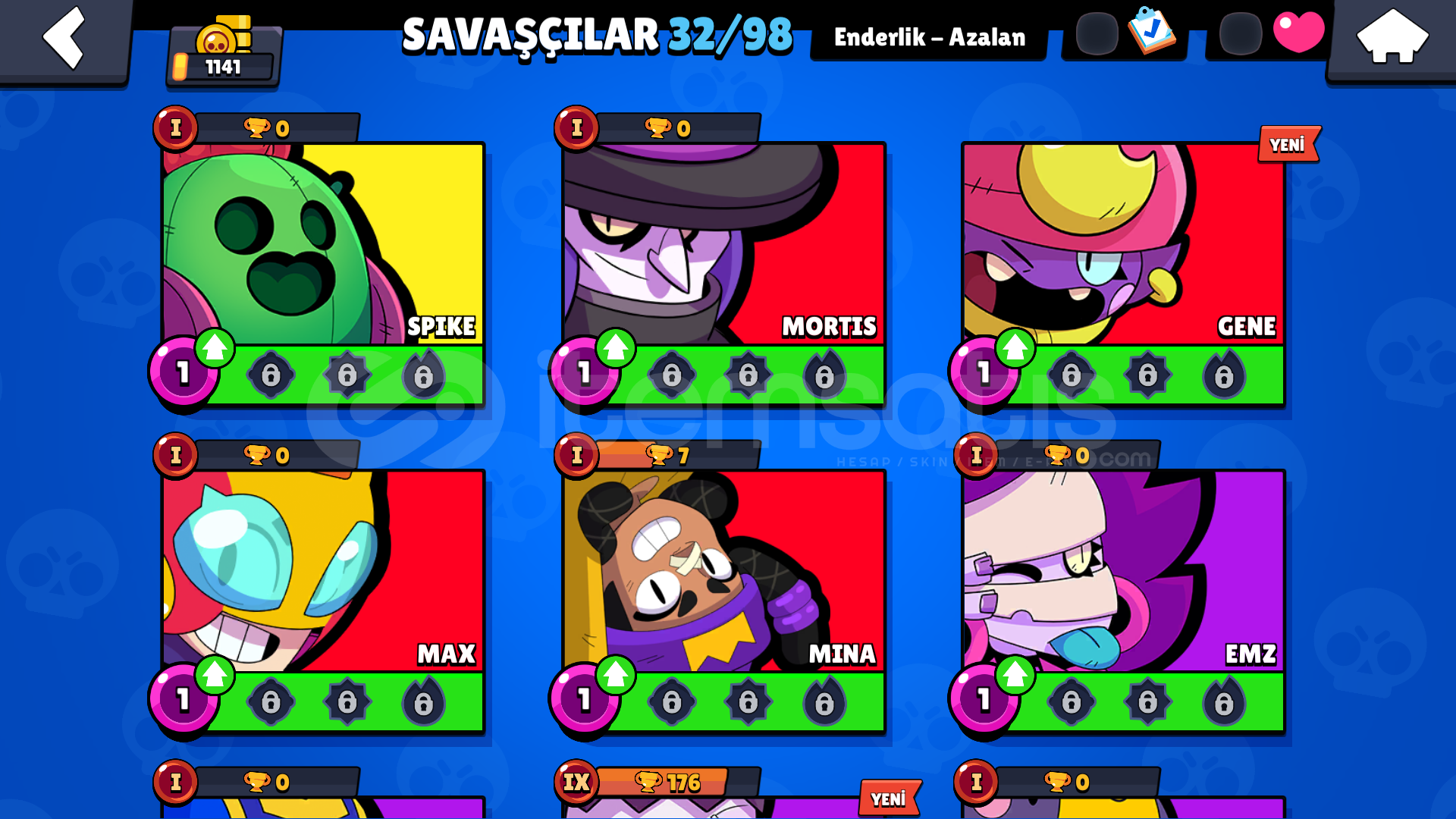 32 KARAKTER1 EFSANEVI4 GİZEMLİ9 DESTANSI4 TANE 11 SEVİYE KARAKTER9 ENDER SKİN10 SÜPER ENDER SKİN4 DESTANSI SKİN2 GİZEMLİ SKİN20000+MUCEVHER45 ElmasHESAP TESLIM EDILIRKEN ALICININ MAIL ADRESI ILE DEGISTIRILECEKTIR