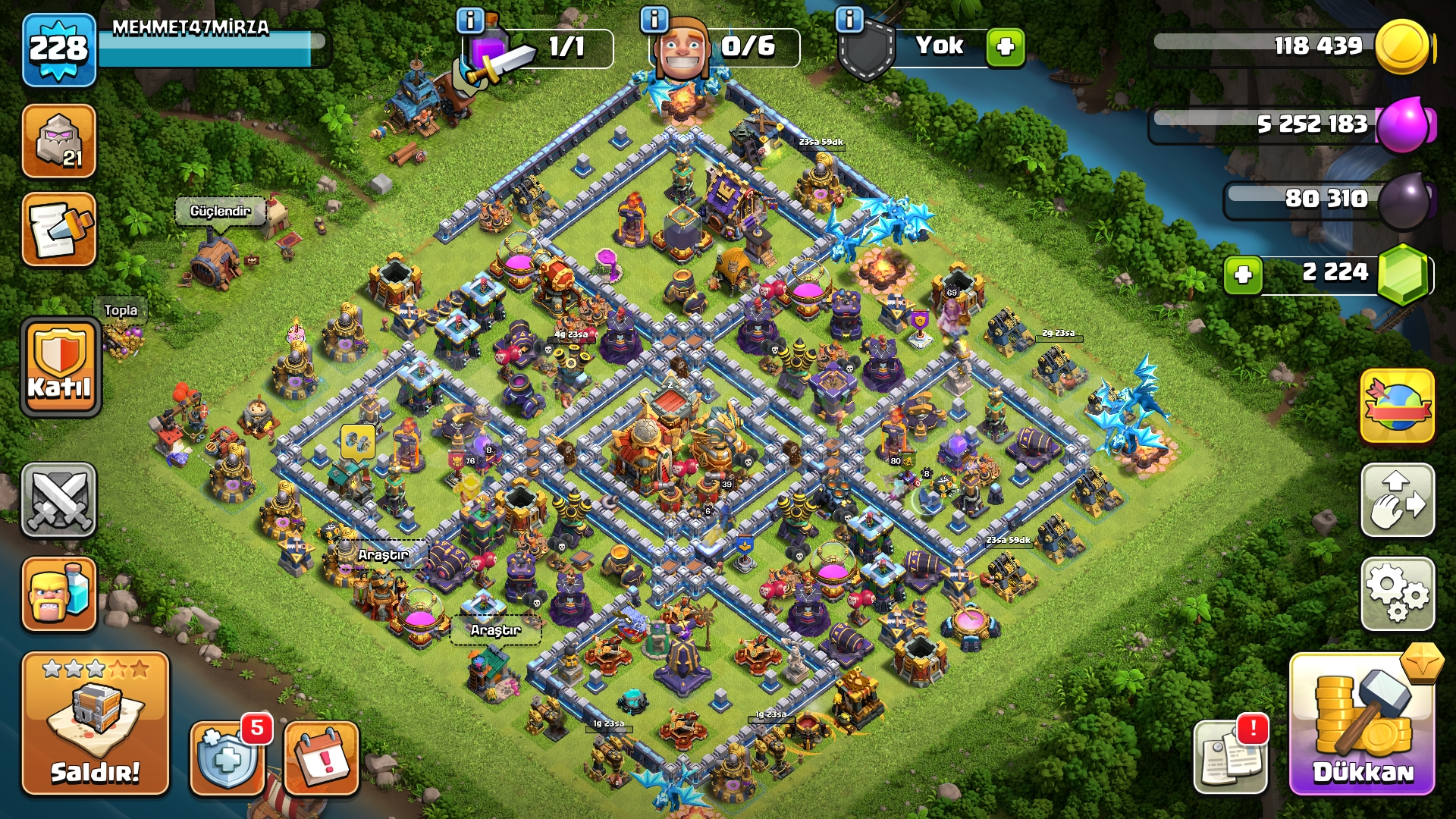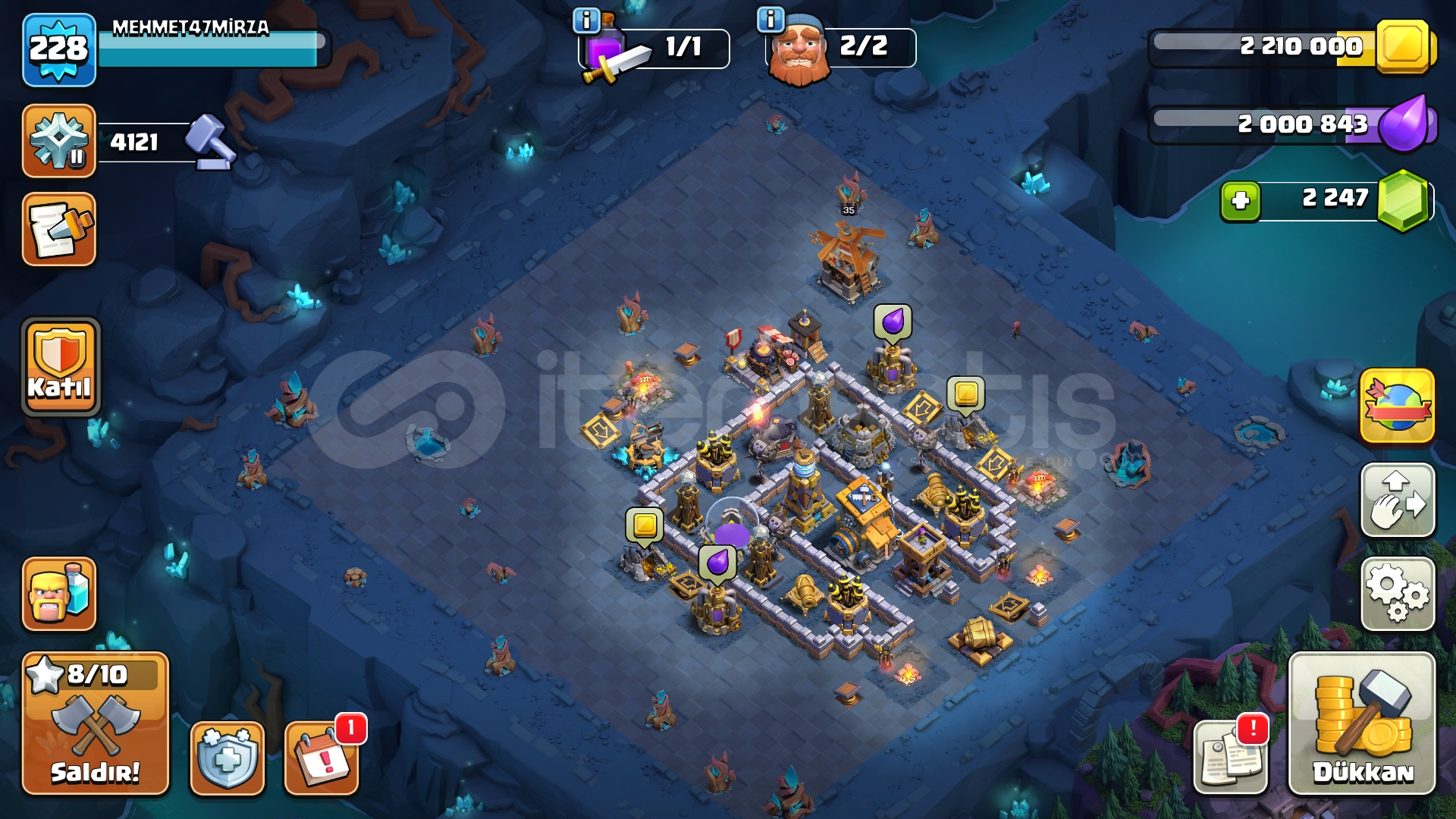 Hesap 16 bb 2200 Elmas var 6 inşaatçı 2 senedir oynamıyorum en son ana köy fullemiştim yan koyler duvarlar tek basılcak 7 senelik güzel bir hesap o da