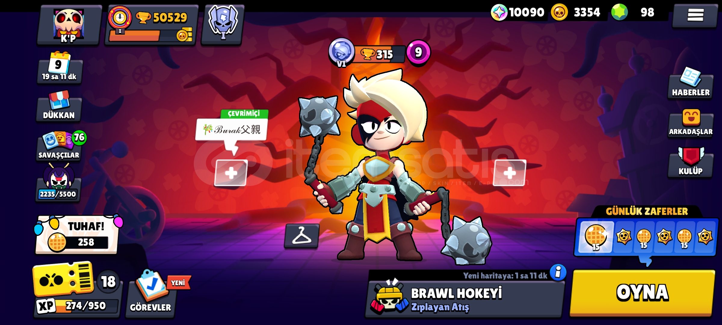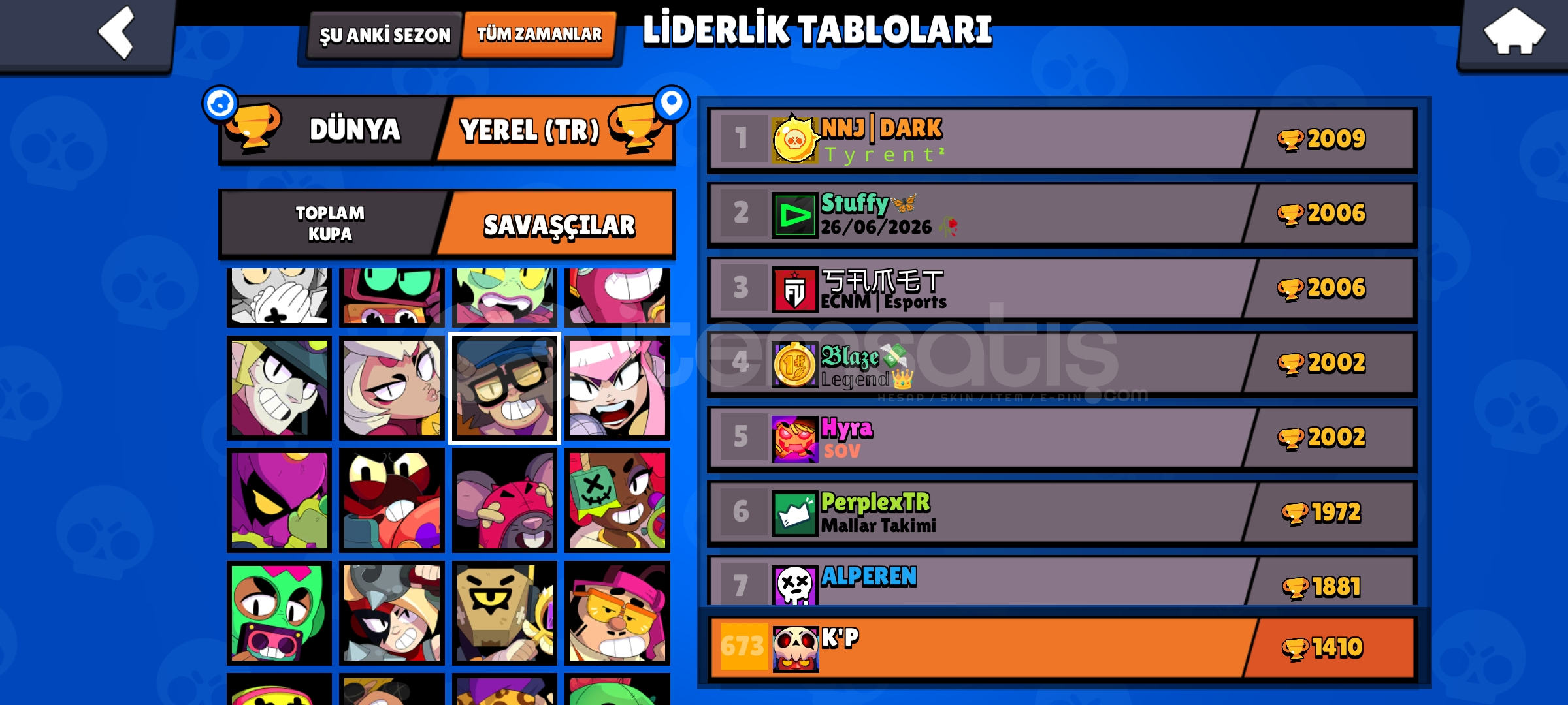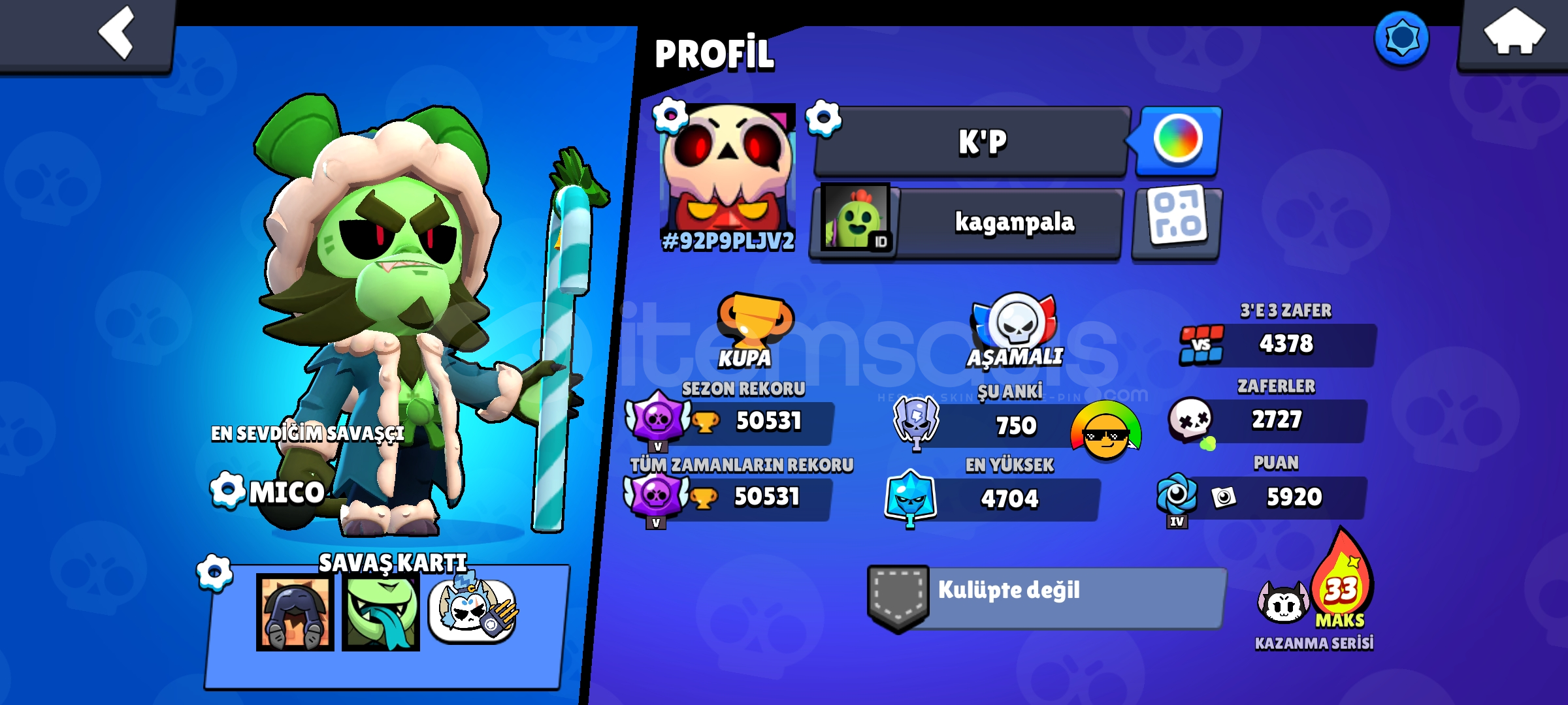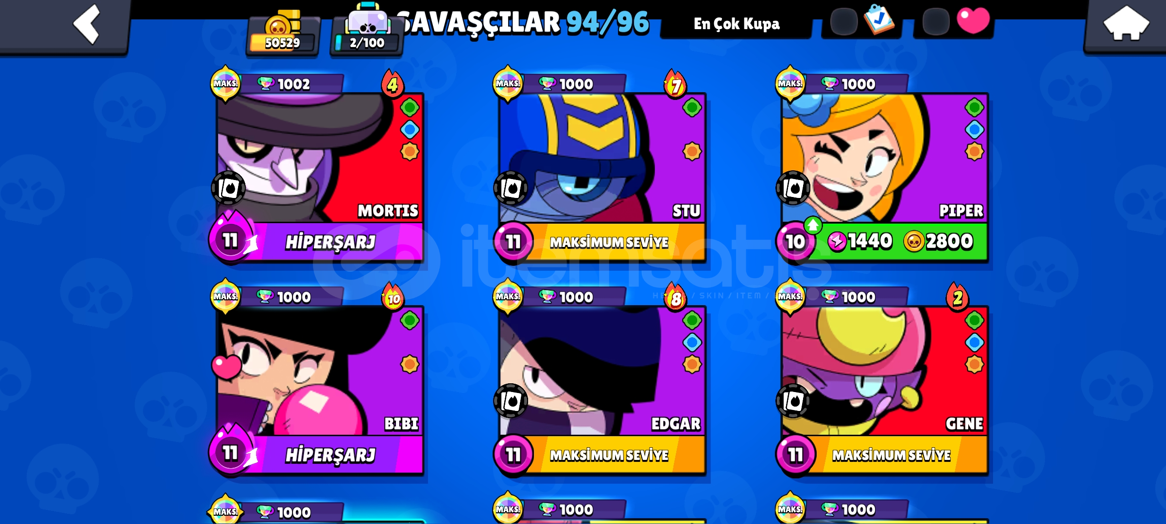 Hesapta daha önceden açılmış brawl passlar vardır hesap kasılmaya hazır şekilde karakterlerin kupaları düşük orta seviye vardır