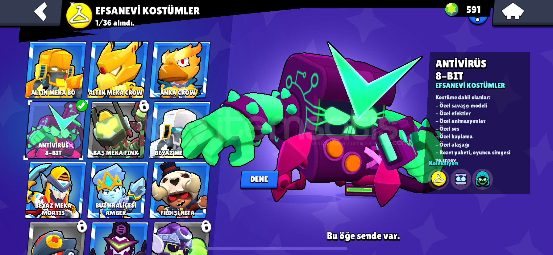 Hesapda 590 elmas ve güzel köstümler var bence fiyat uygun mail değişimi vardır
