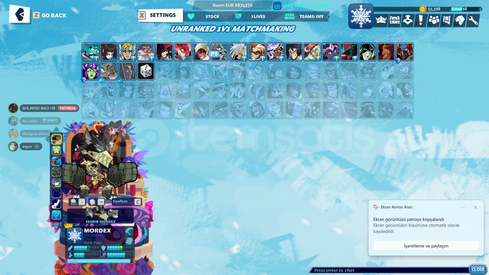brawlhalla alucard(all time limited) hesap, hesap içerisinde bulunan skinler; fenrir mordex, demonkin diana(limited) , apocalypse mirage(epic), cthu shang(limited), mecha ragnir; nightshade ragnir, scarecrow nix, nightcap caspian, harlequin caspian wenqinq linfei huntsman wolkov, forune captain caspian, nightcap caspian, cyber bödvar, pteranadon gnash, ember the hunter, kunoichi val. Hesap içerisinde jac-Ko-lantern adlı bir tane k.o efekti, 3 tane sidekick; diablo(limited), malefic grasp butter scotch ve 1 tane ofrenda 2023 adlı limited podyum vardır, hesapta alucard dışı 3 crossover vardır (enchantress, tai lung, black knight) hesap içerisinde neredeyse her karakterde comuniitty colors v1 v2 ve espor v1 v2 v3 v4 renkleri vardır. steam hesabında ekstradan soundpad vardır. Hesap bu şekildedir almadan önce iletişime geçin, pazarlık vardır