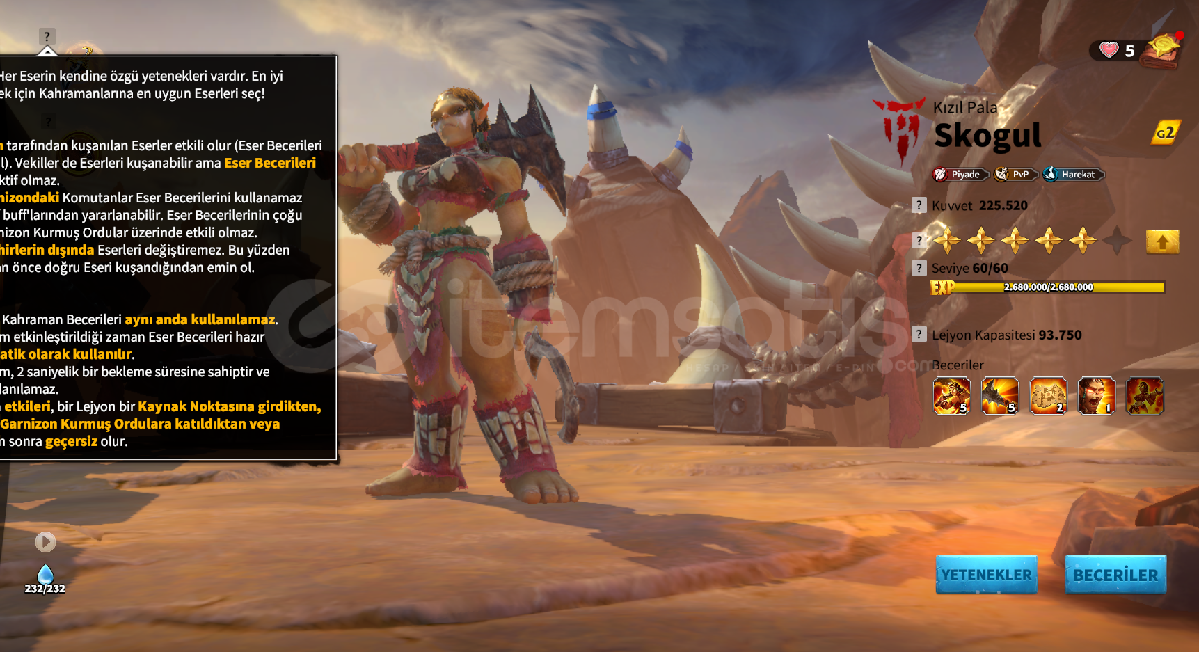 10 uynak kahraman 5 tane kahraman uyanıga yakın eserler iyi durumda 5 tane 5 sevi 2 4 seviye 2 tane 3 seviye petler güçlü a...