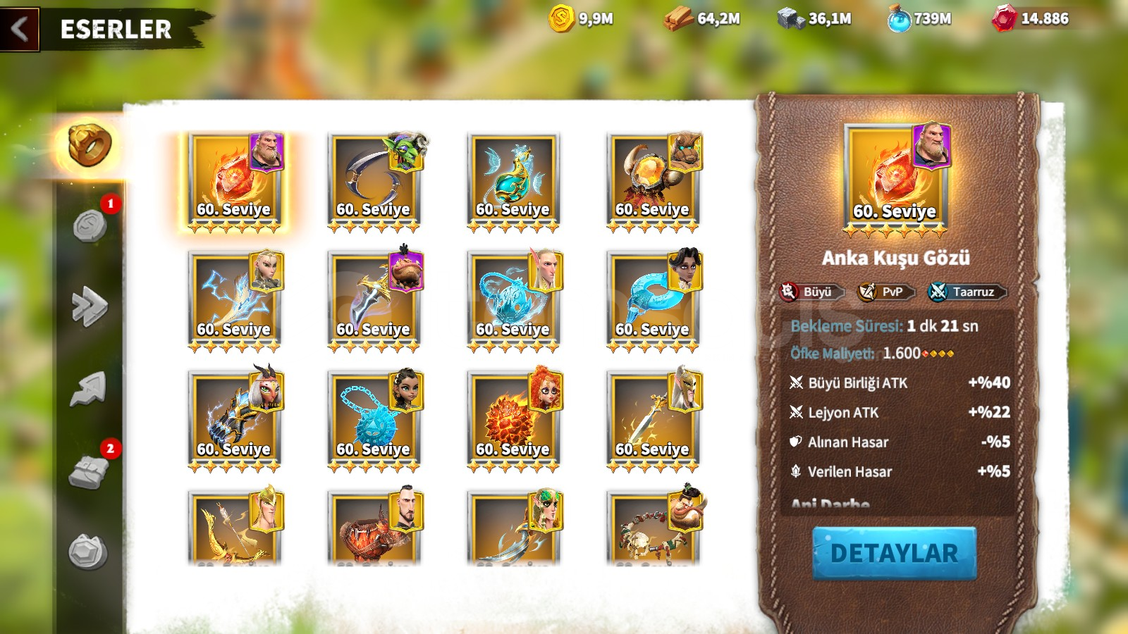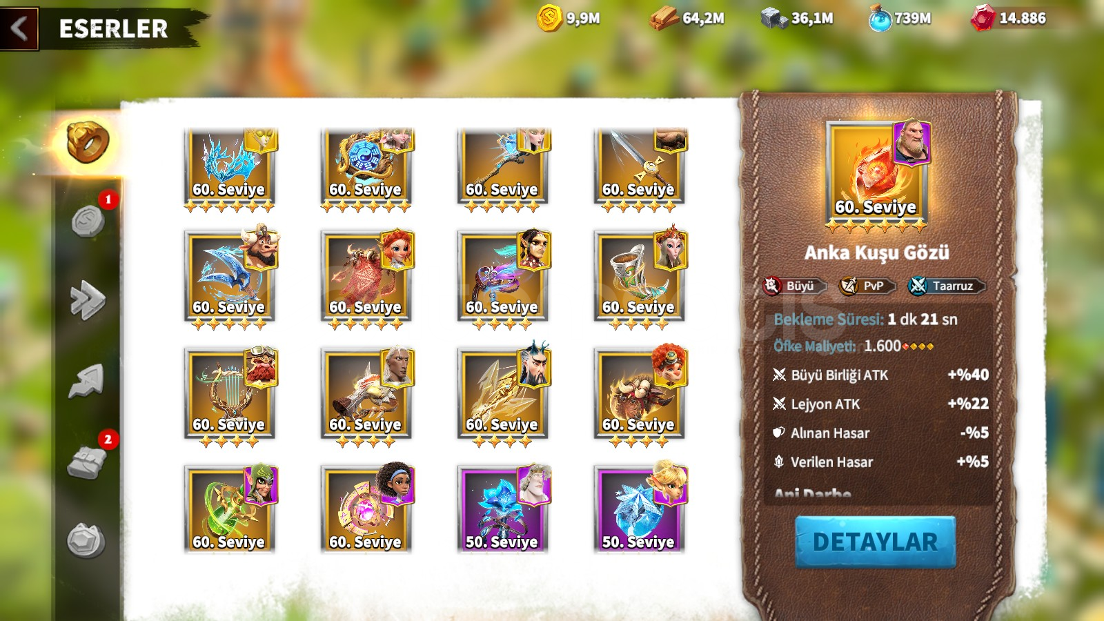 Sadece Gmail bağlı,57 göç biletli,9 uyanmış, 4 tane 5-5-5-1 hero 4 büyücü eserli, tam petli büy&uu...