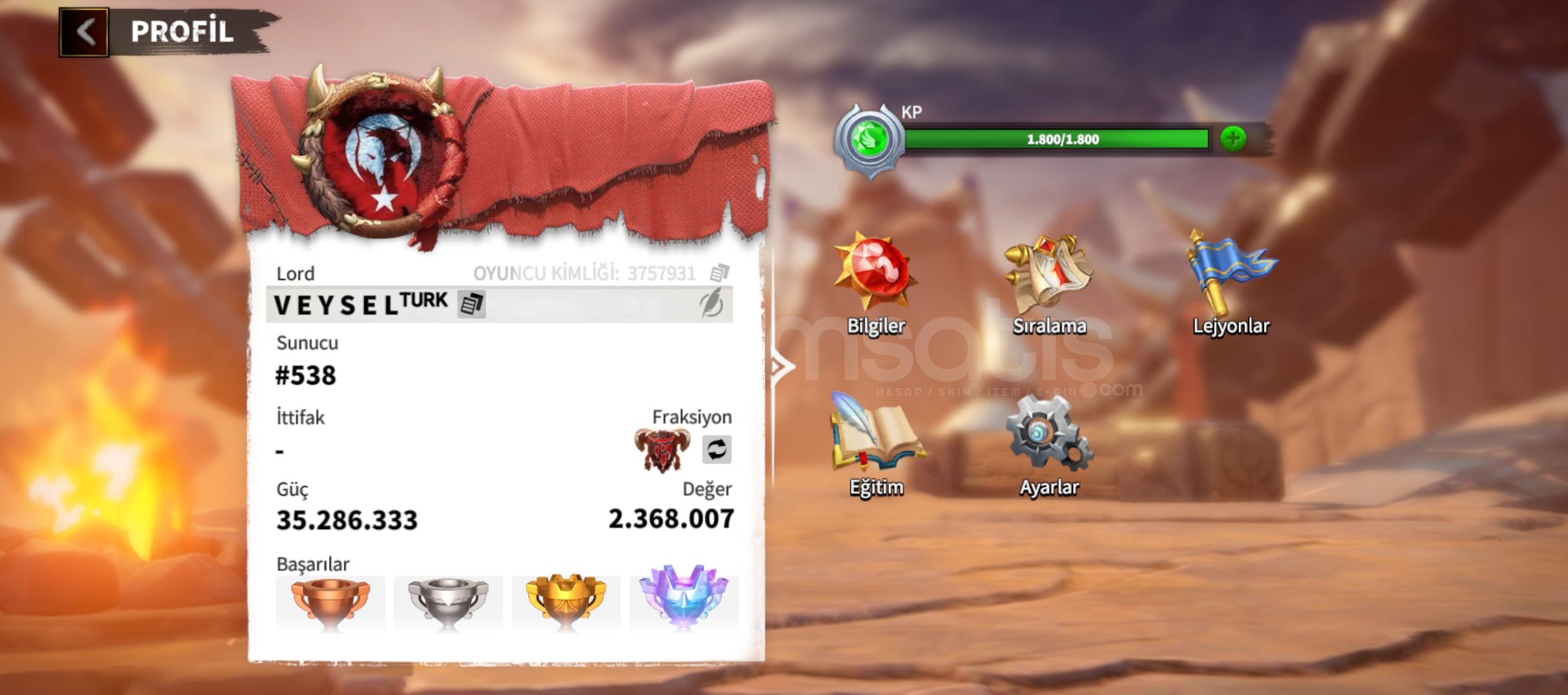 Call of Dragons kategorisinde Random Hesap ilanı oluşturmak yasaktır. Tespiti halinde ilanınız kapatılır ve 2. tekrarda hesabınız tamamen kapatılır.