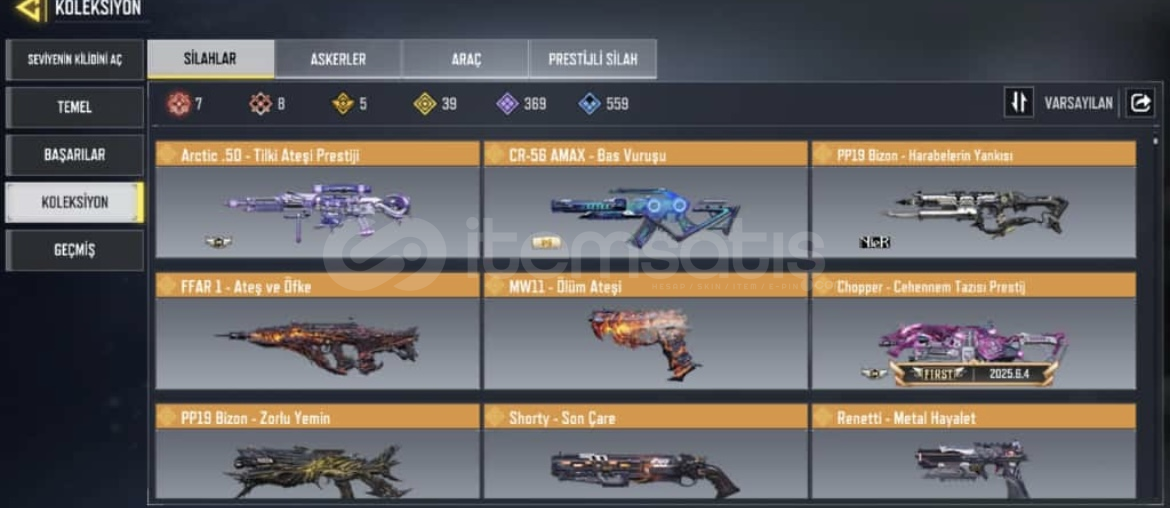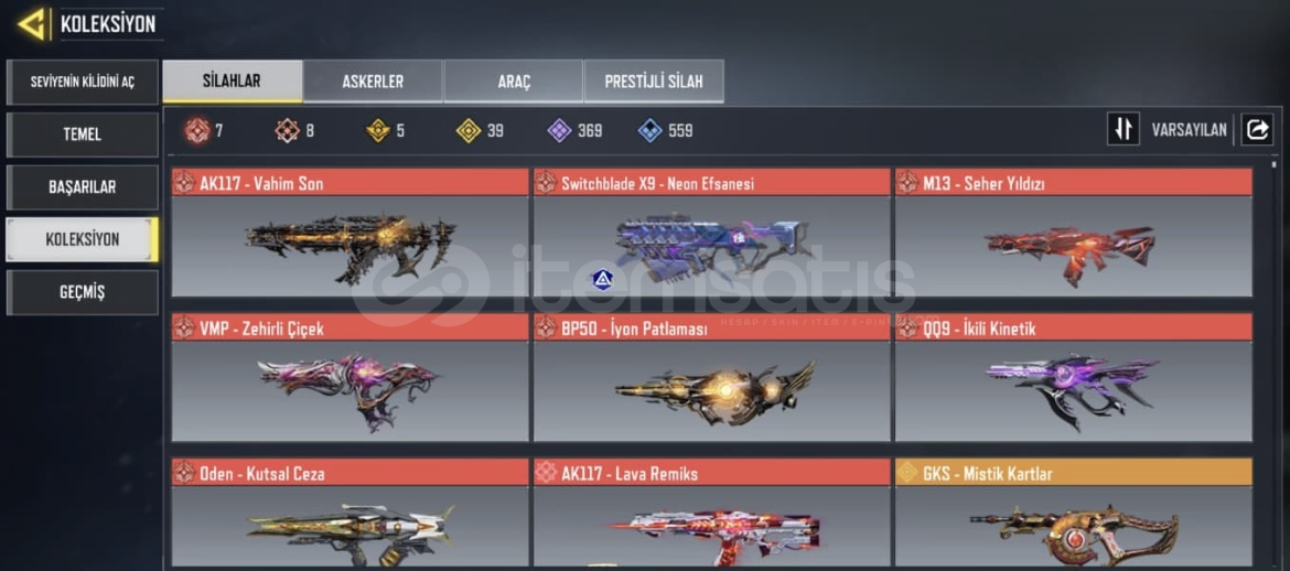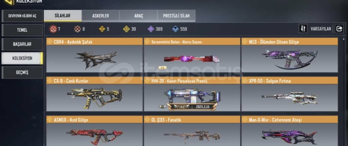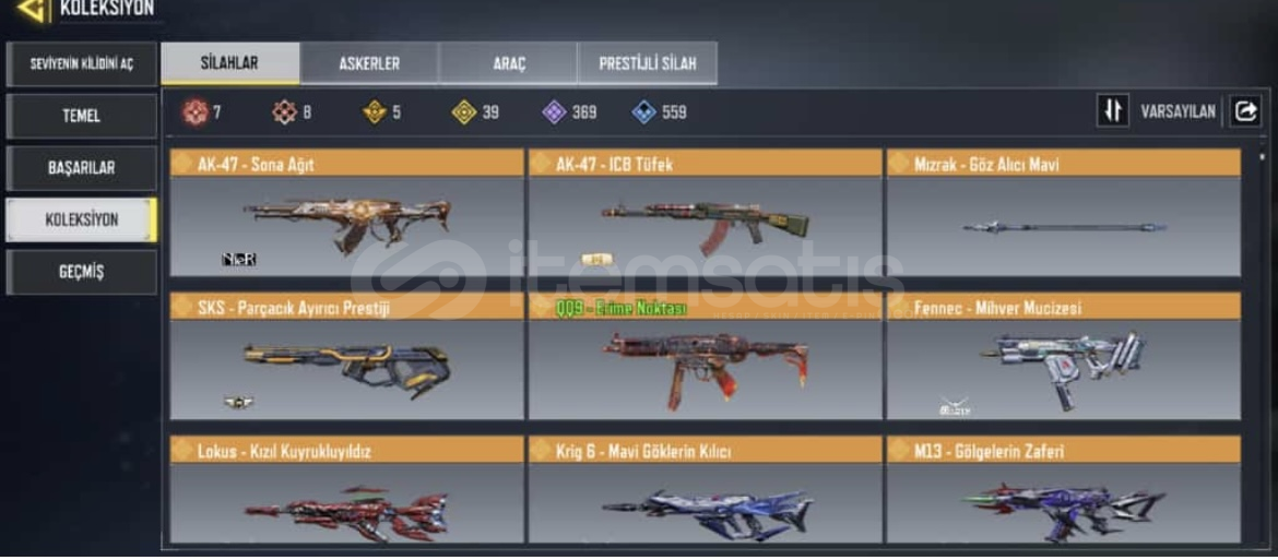 🔫35 Efsanevi Silah + 5 prestij + 4 Efsanevi kılıç ⚔️