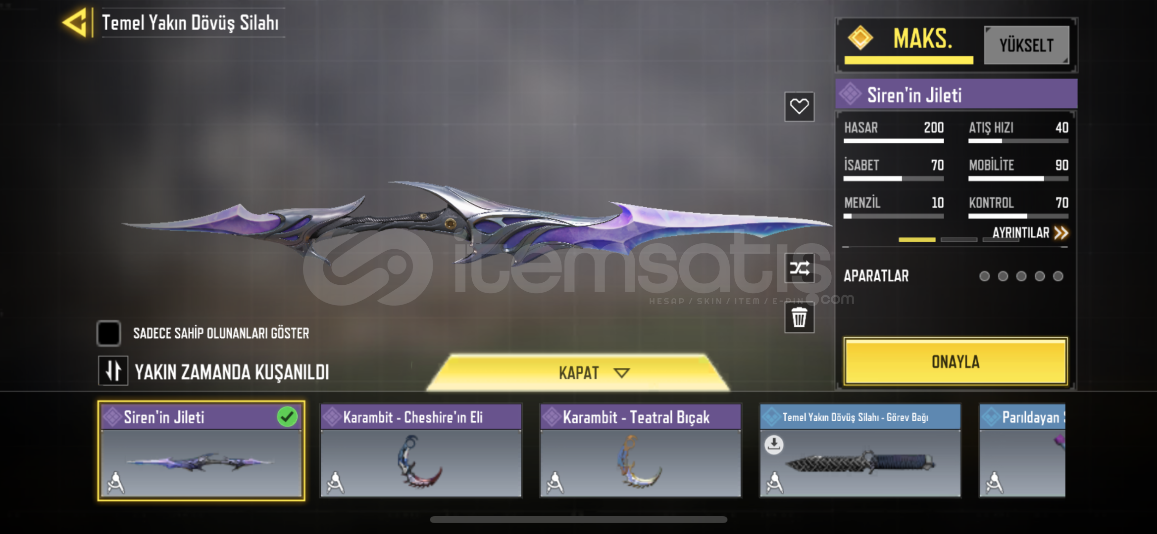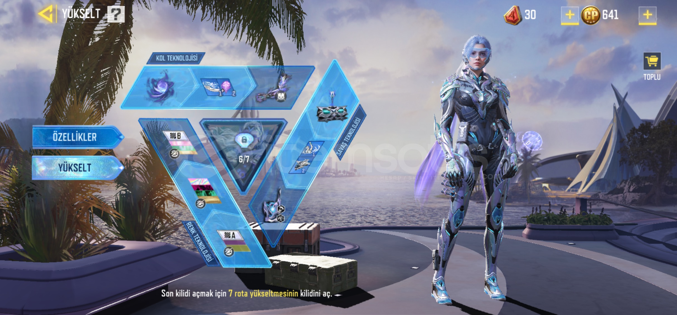Hesapta battle pass aktiftir 566 Cp vardır Siren Mitik Karakteri Toplam 6 seviye açılmıştır (her 3 bölümden 2 tane) çok oyunculuk sıralama maçında efsanevi ranktir