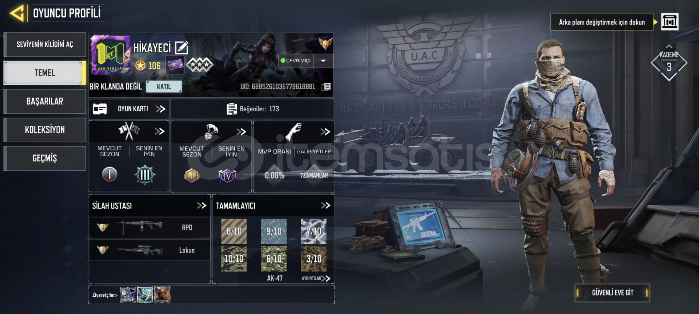 Hesap 1mistik silah 110lvl cok eski hesaptır emojiler VE bütün silah skinleri var