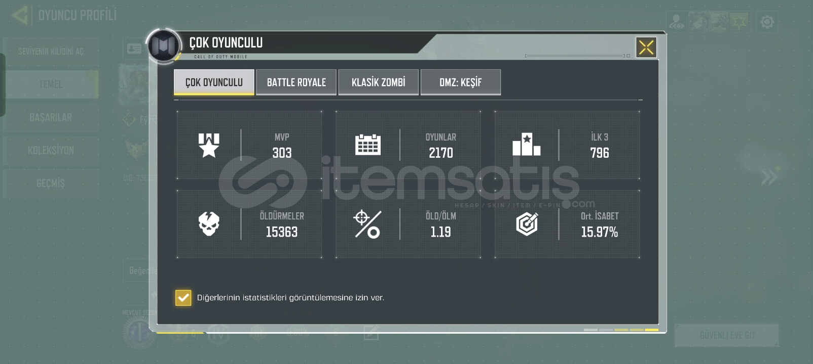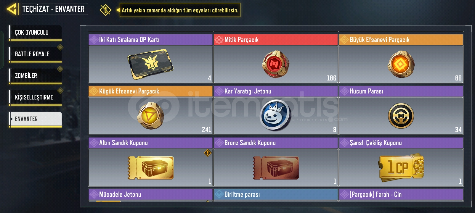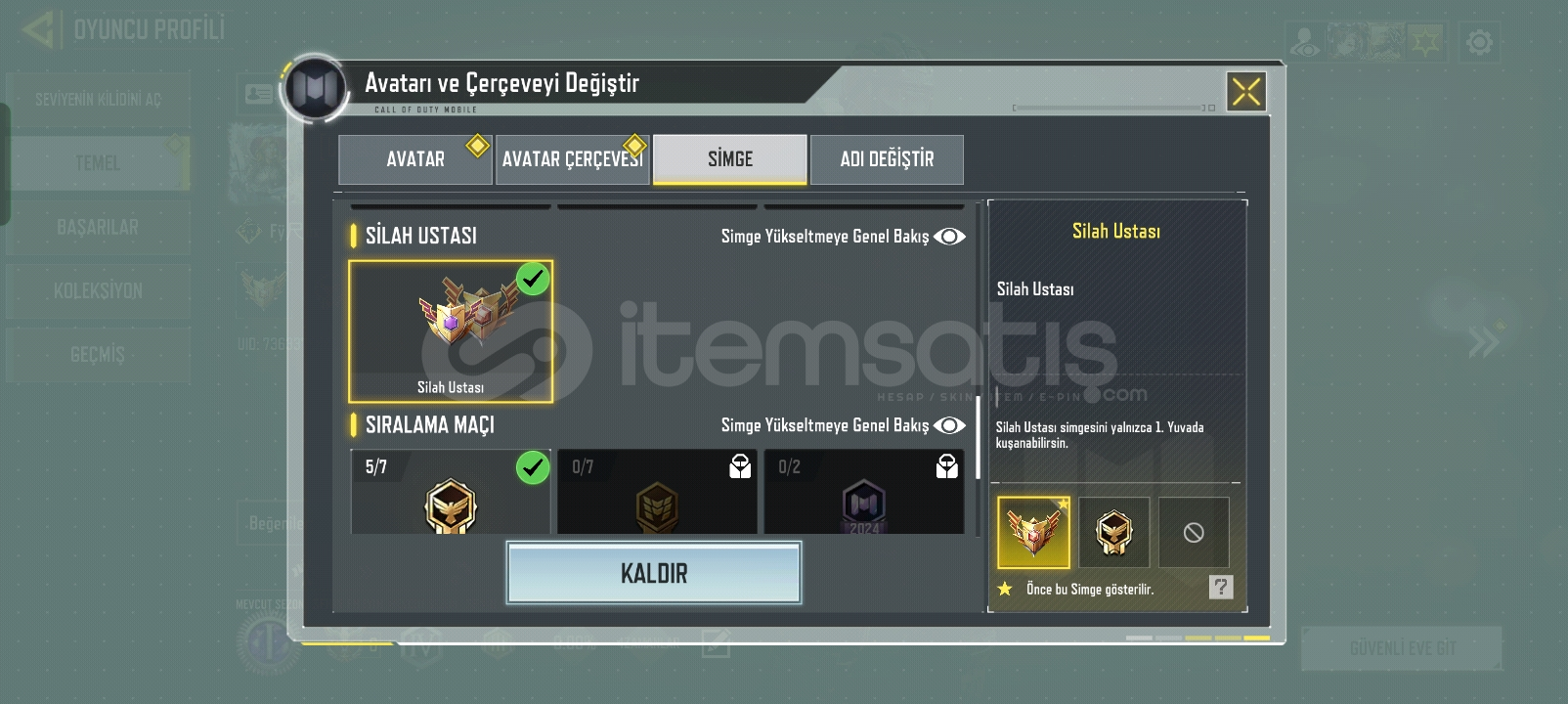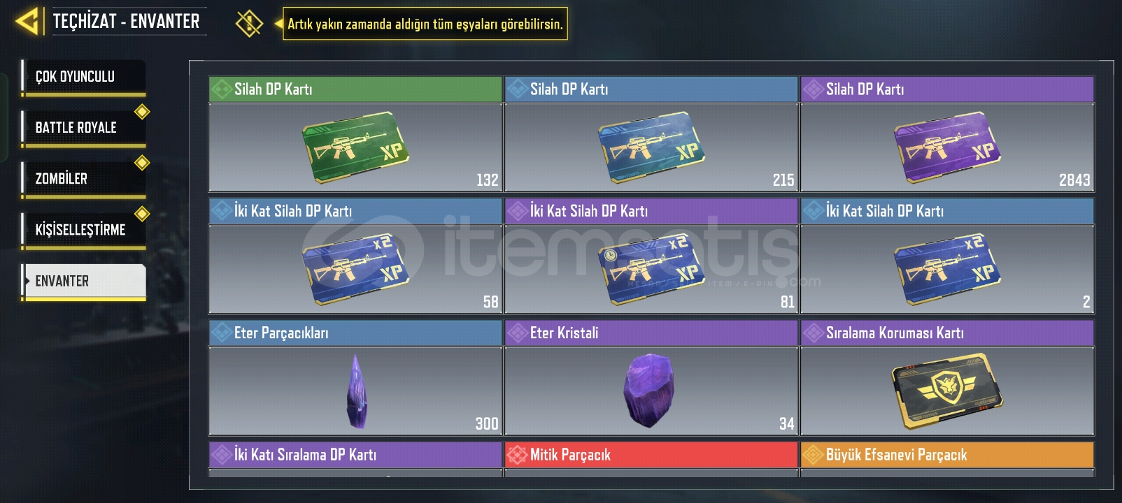 1 adet mitik silah, 9 adet efsanevi silah327 seviye, şuan Efsanevi rütbe , önceki sezonlarda 6 kere efsanevi liderlik tablosuna girdi191 mitik parçacık, 90 büyük efsanevi parçacık, 246 küçük efsanevi parçacıkAK 117 lava remix mitik silahta silah ustalığı ve özel silah adı varLokus silahında silah ustalığı ve özel silah adı var2 yıllık hesap61,000C kredi v...