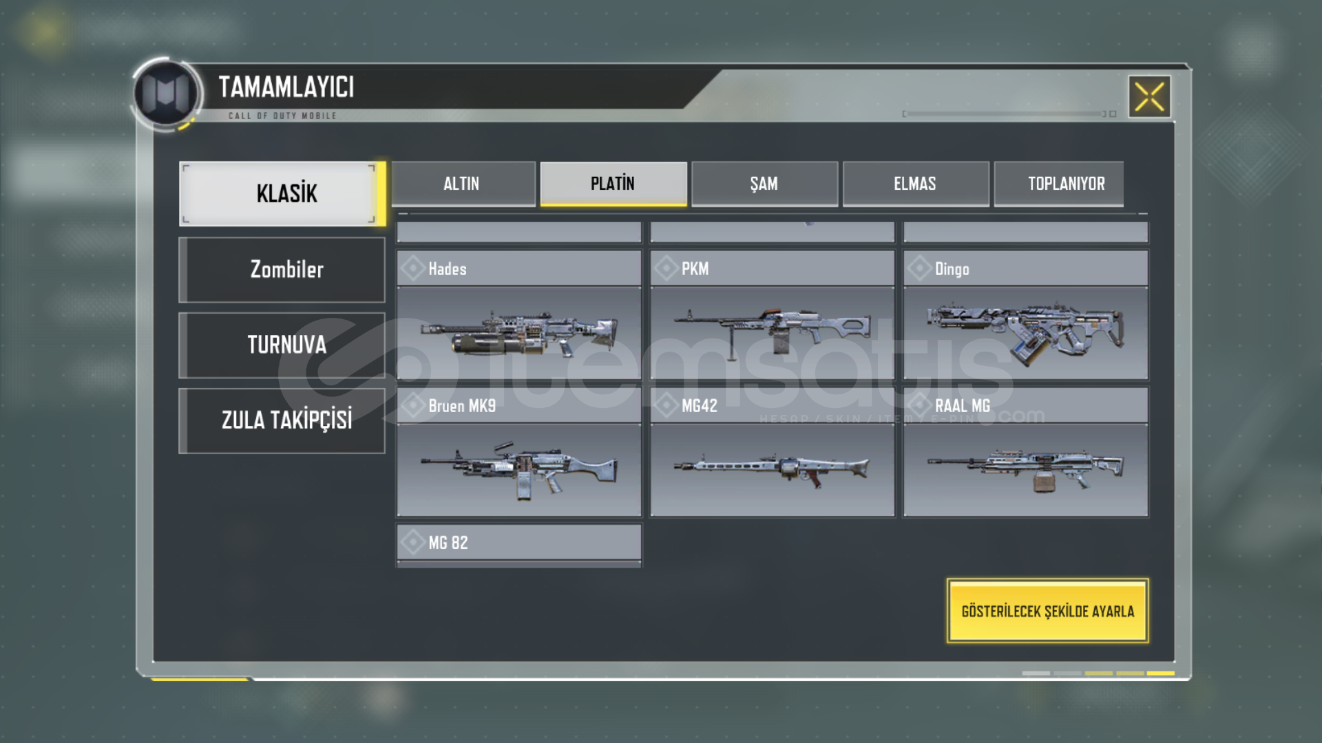 PAZARLIK YAPILIR--HESAP İÇERİKLERİ;• Saldırı, Keskin nişancı ve Makineli tüfeklerde Altın ve Platin kamuflaj vardır• Hafif makinelilerde Altın kamuflaj vardır HESAP HAKKINDA SORULARINIZ OLURSA DM ÜZERİNDEN YARDIMCI OLABİLİRİM.• 1 Adet Mitik Silah• 6 Adet Efsanevi Silah• 215 Adet Destansı Silah• 845 Adet Nadir Silah• 108 Adet Destansı Karakter• 53 Adet Nad...