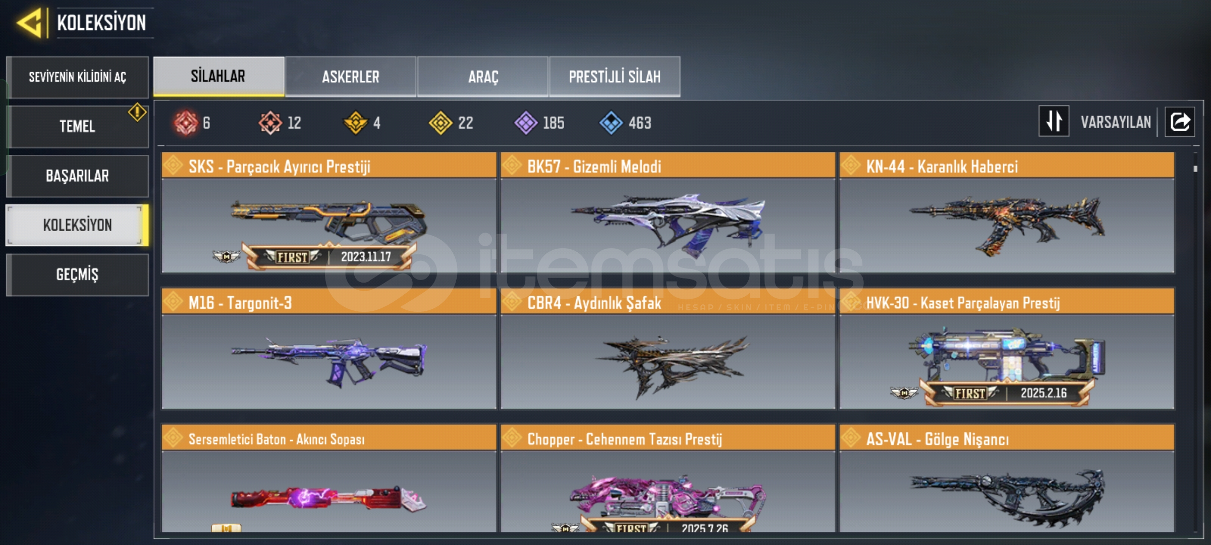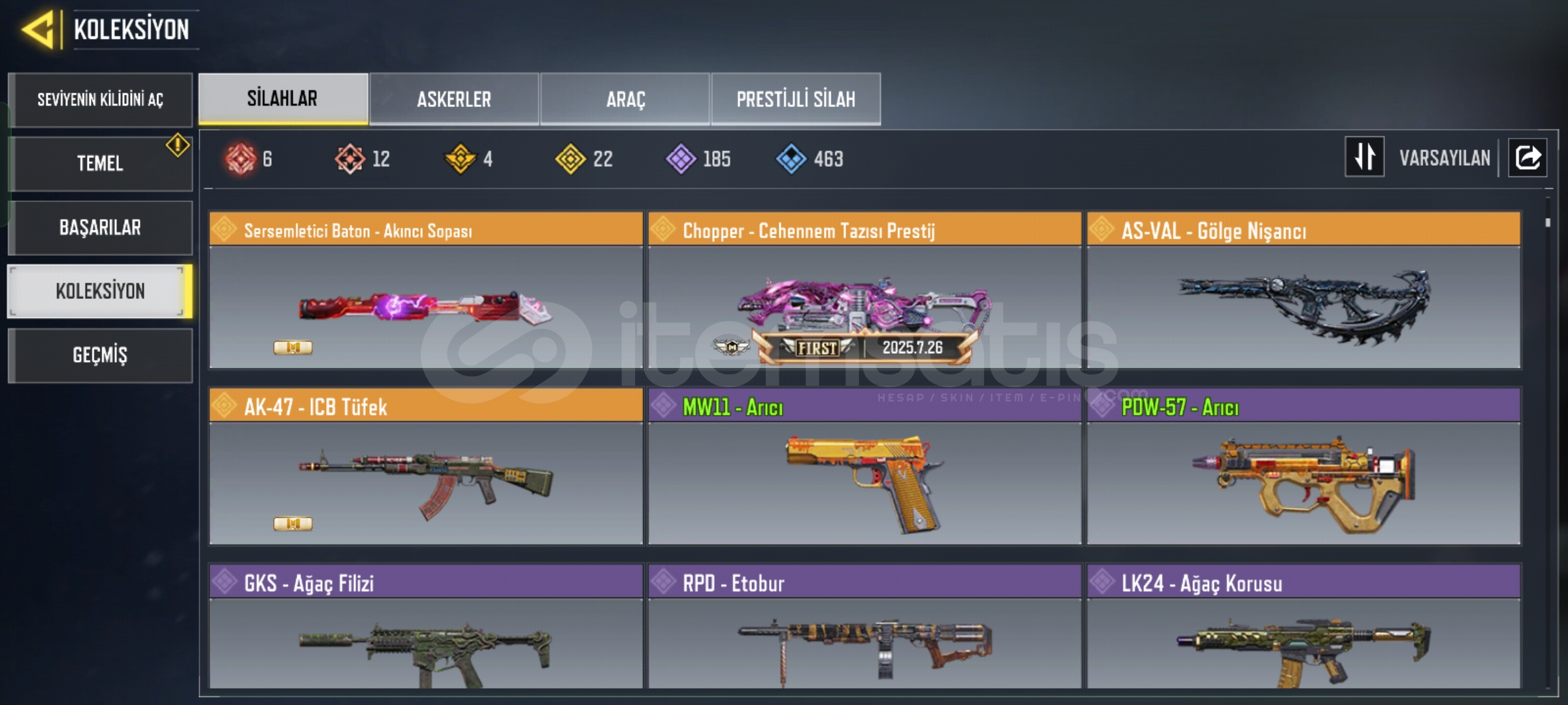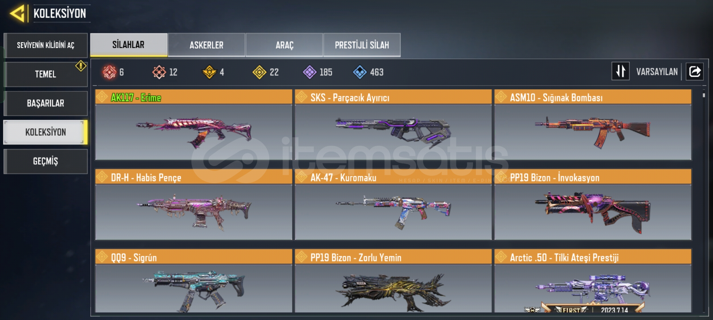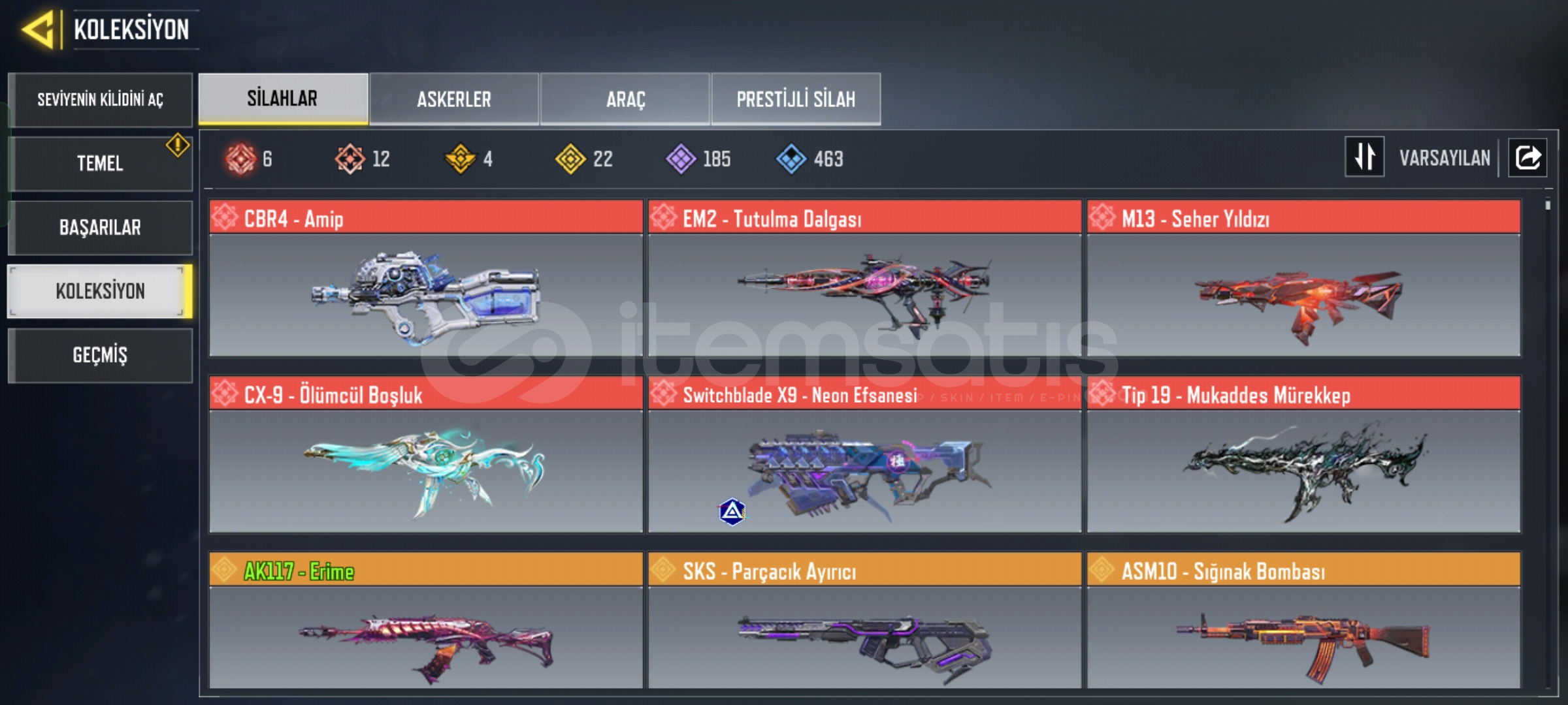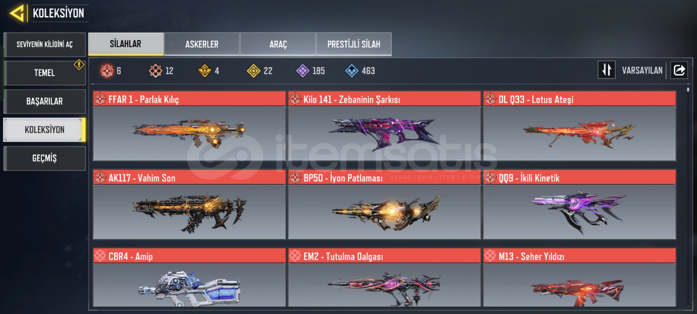 6 ADET MİTİK KARAKTER HEPSİ FUL MAX))) 12 ADET MİTİK SİLAH)) ((6 SI MAX YAPILDI 22 ADET EFSANEVİ SİLAH BİR MİTİK KARAKTER ALMAYA KALKSANIZ 12 BİNE GELİYOR VE MAX YAPMAYA KALKSANIZ 20 BİNE GELİYOR KAÇIRMAYIN